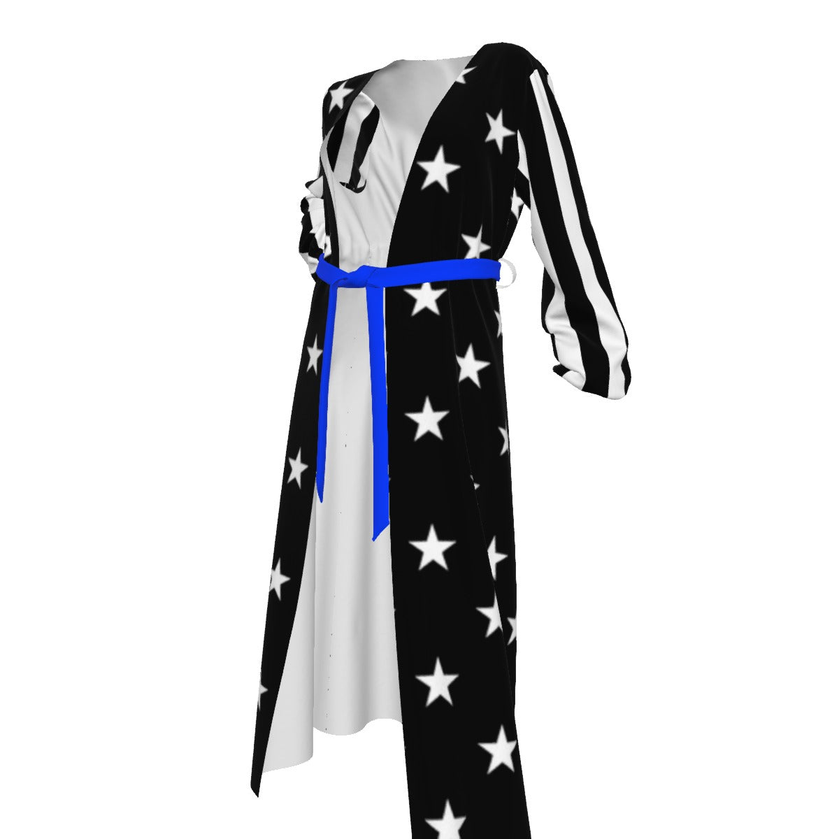Thin Blue Line Flag Inspired Women’s Lace-up Chiffon Robe