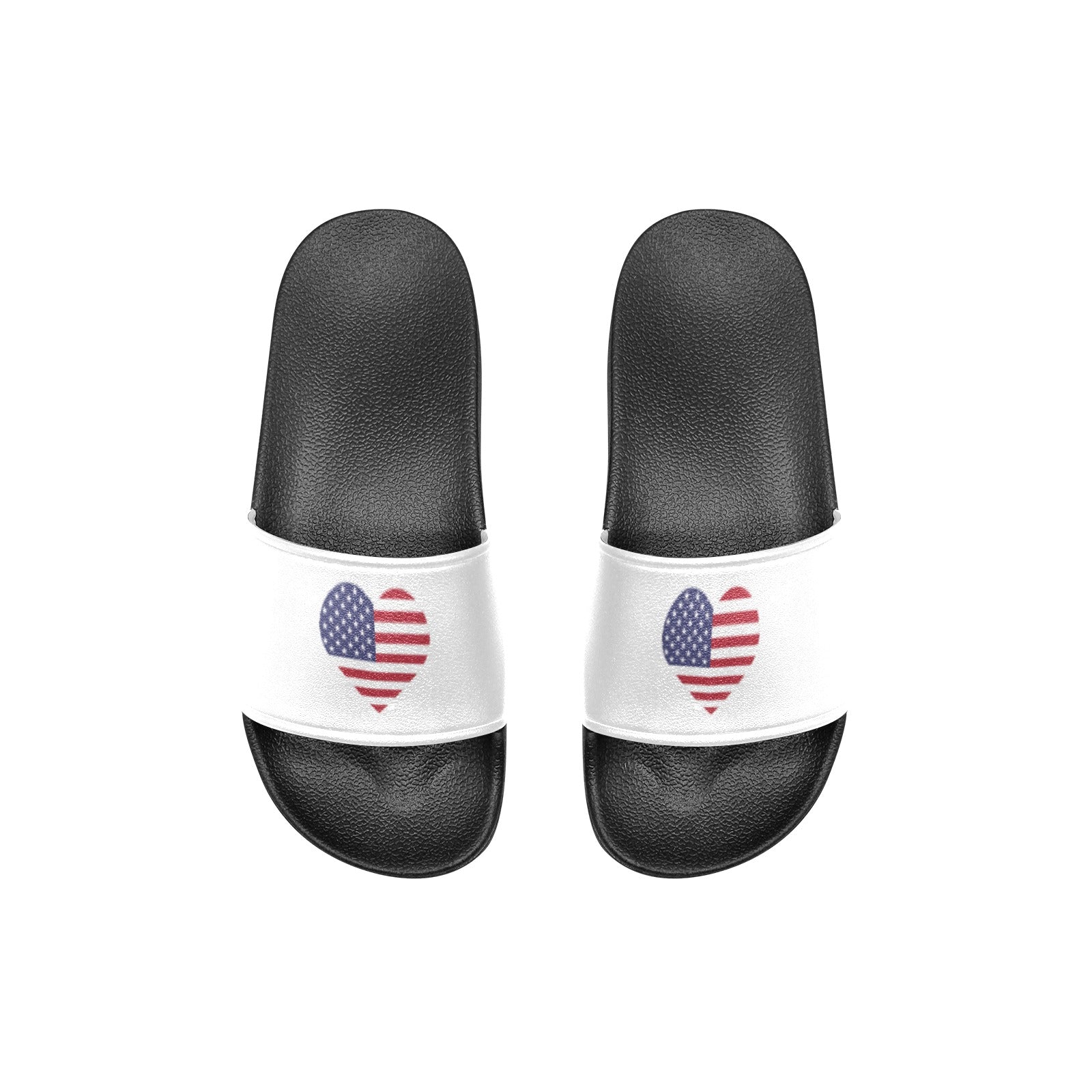 Stand out and celebrate your style with this USA/American Flag Heart Kid’s Slide Sandals. Add it to your collection today.