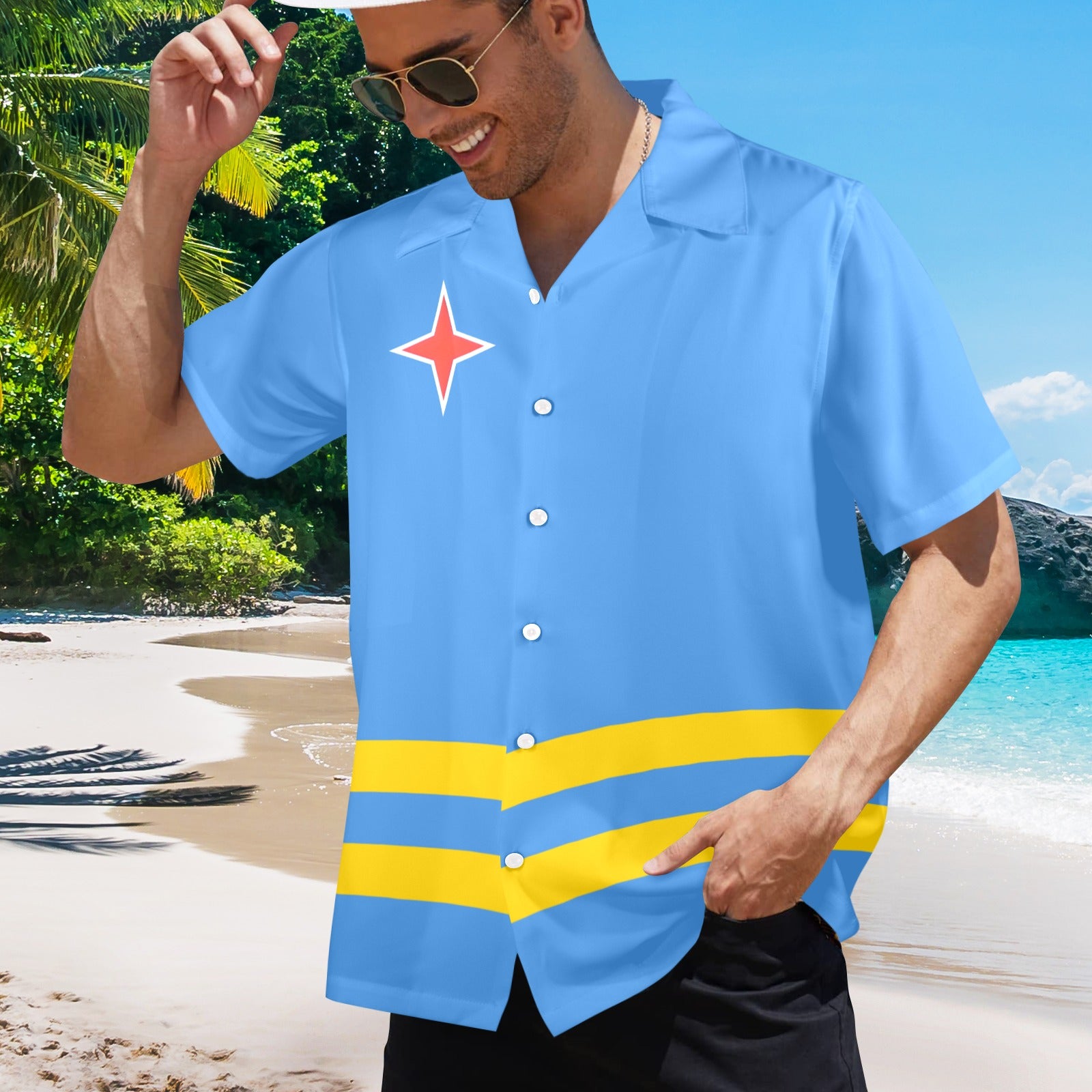 Stand out and celebrate your style with this Aruba Flag Inspired Hawaiian Shirt. Add it to your collection today.