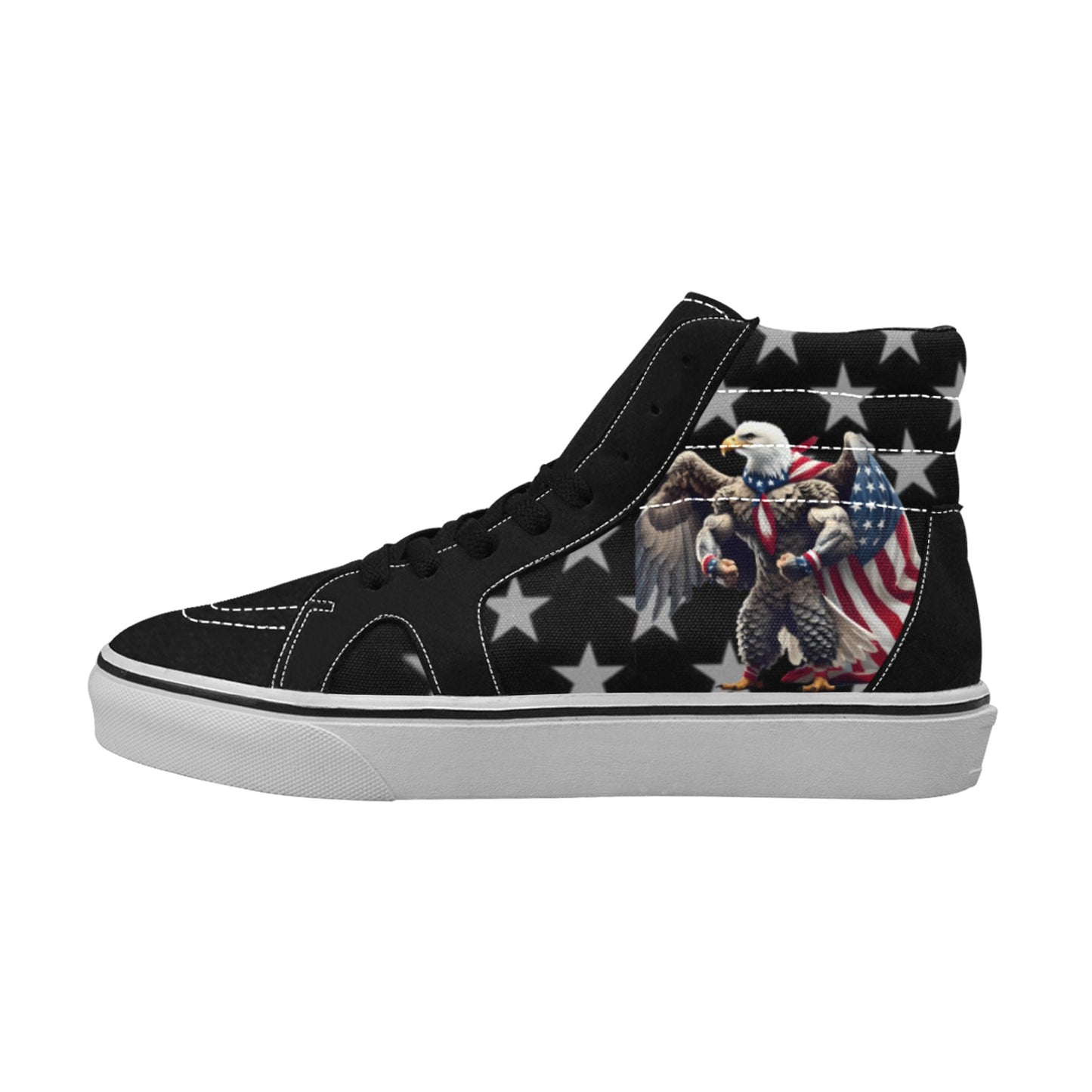 USA/American Flag Inspired Bald Eagle With Cape Men's High Top Canvas Shoes
