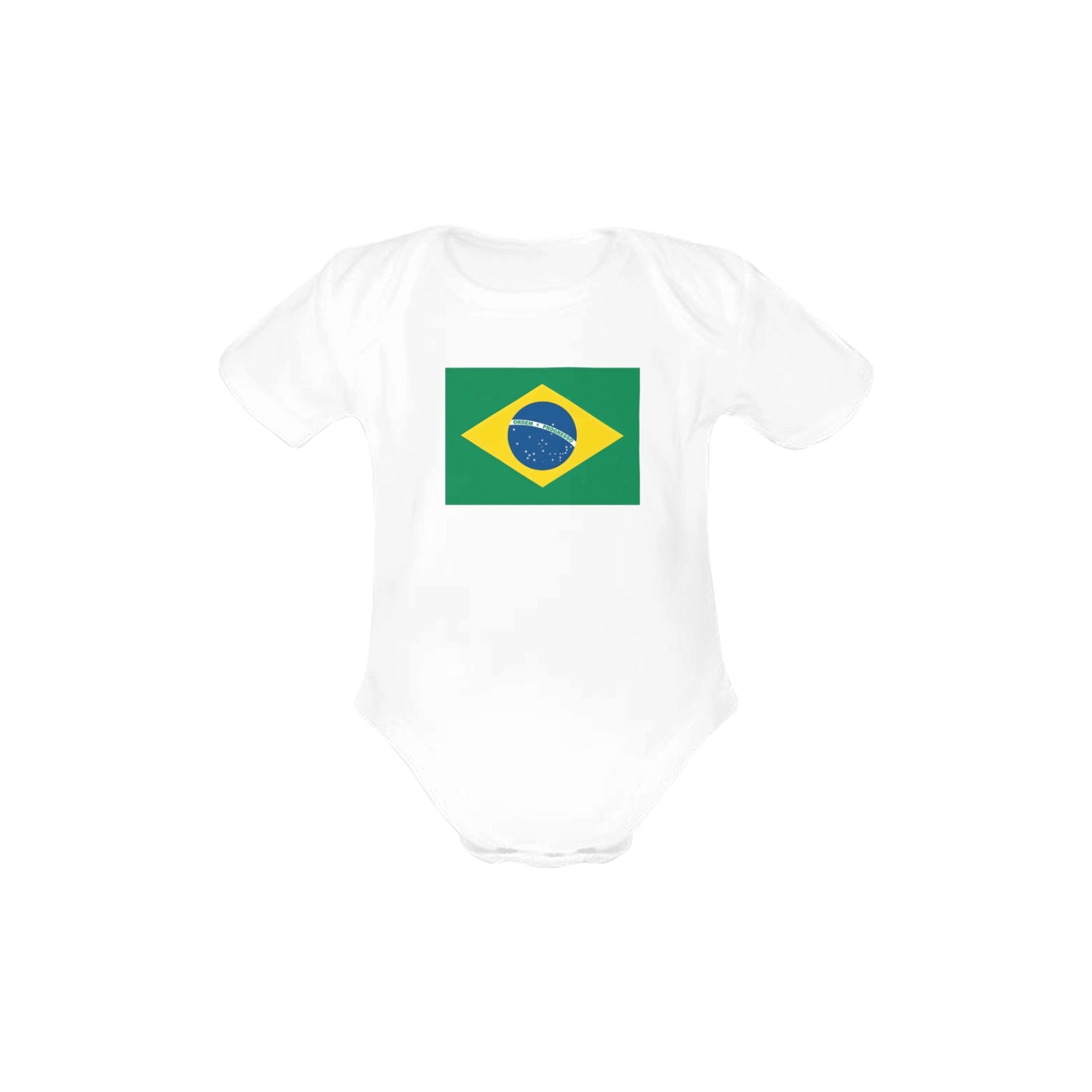 Brazil Flag Baby Short Sleeve Unisex Bodysuits(Made in USA)