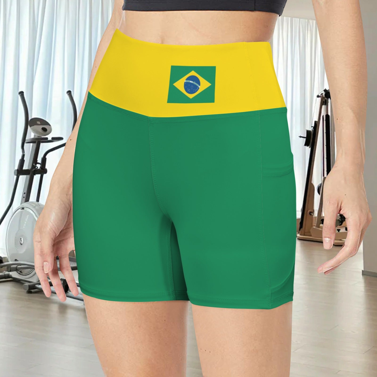 Stand out and celebrate your style with this Brazil Flag Inspired Yoga Active Shorts with Pocket. Add it to your collection today.