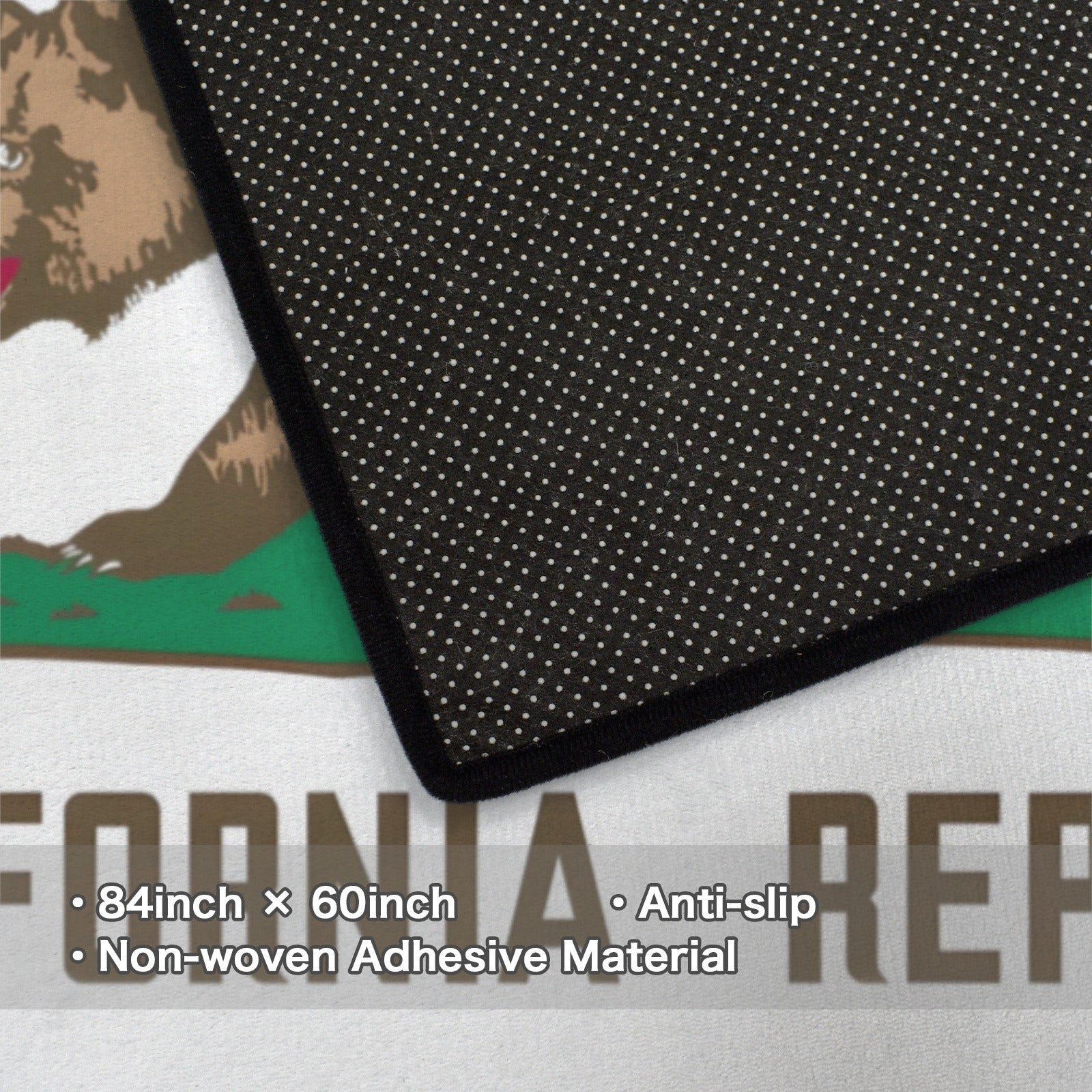 Show your style and pride with our California Flag Inspired Area Rug with Black Binding (Made in the USA). Designed with quality materials and crafted for impact, this piece is perfect for everyday use or special occasions. This 84×60 in. area rug features flannel with thickened non-woven fabric, a luxurious plush surface, a non-slip bottom with small dots for enhanced grip, and a black fixed bias binding for a clean, polished finish.