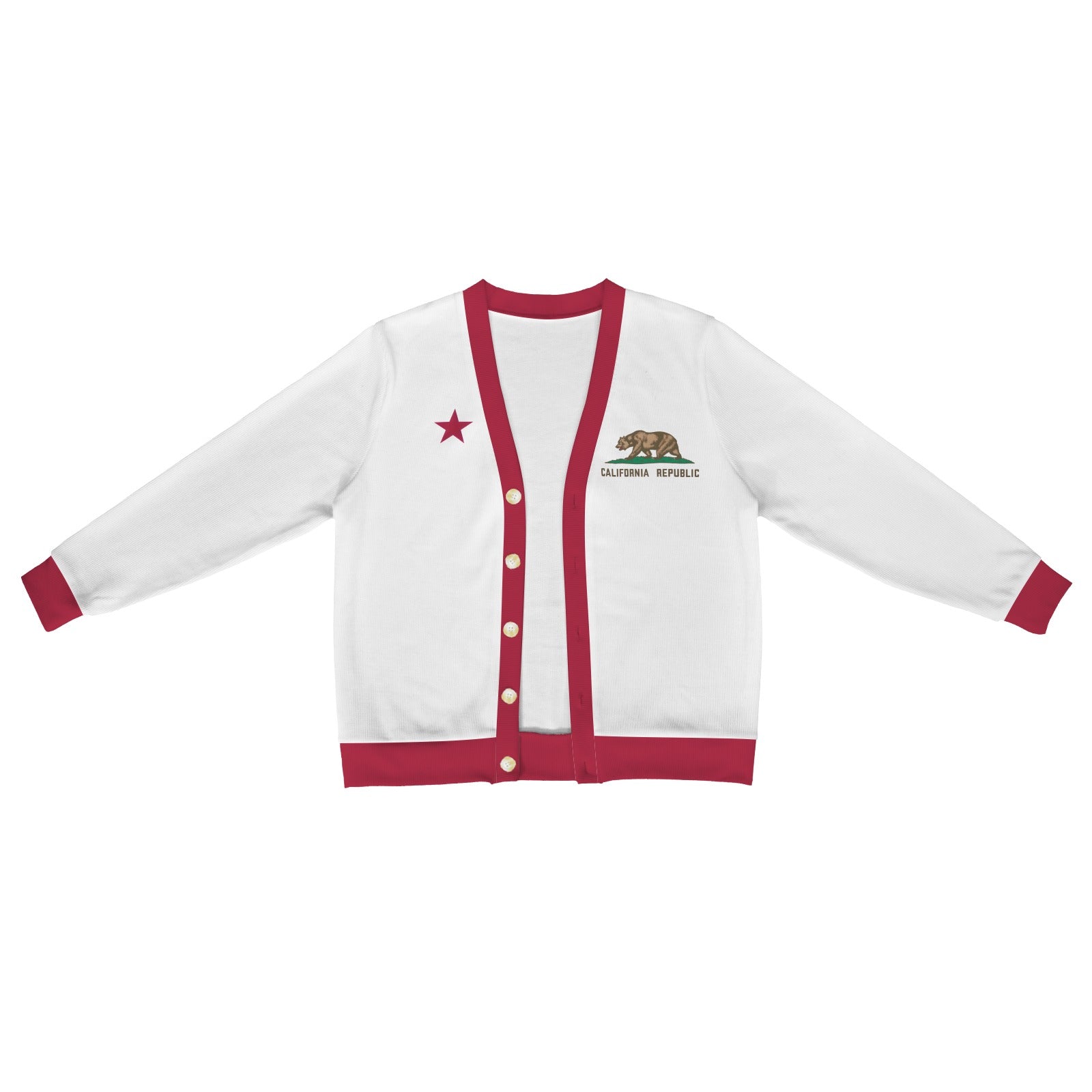 Stand out and celebrate your style with this California Flag Inspired Men’s Cardigan. Add it to your collection today.