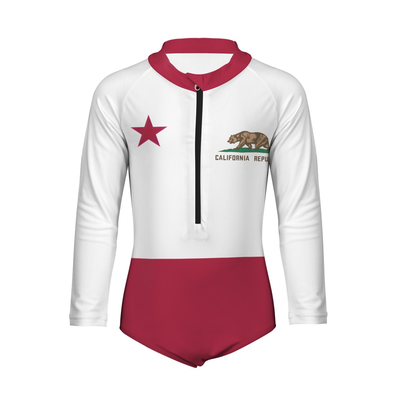California Flag Little Girls' Long Sleeve One-Piece Swimsuit