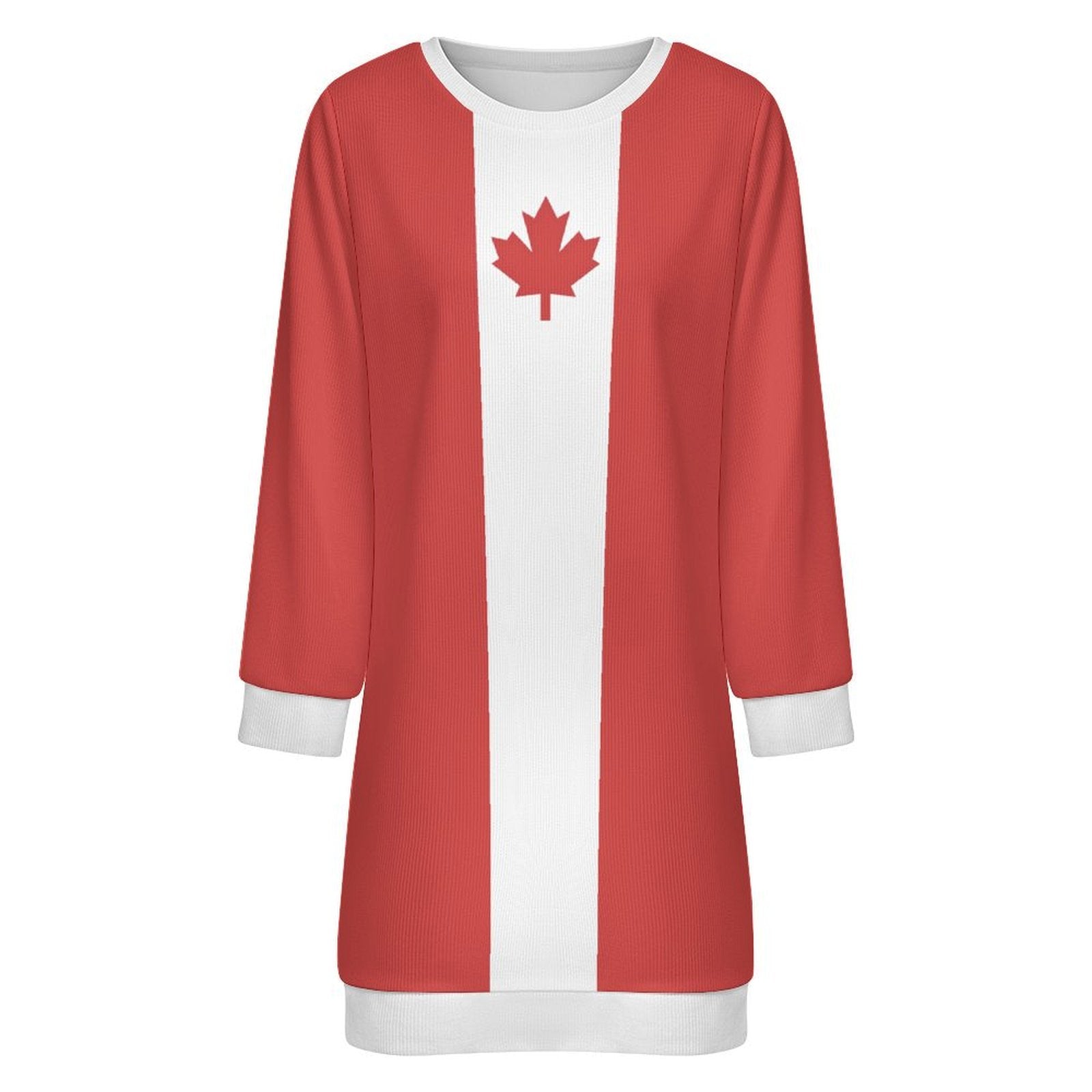 Stand out and celebrate your style with this Canada Flag Inspired Sweater Dress. Add it to your collection today.