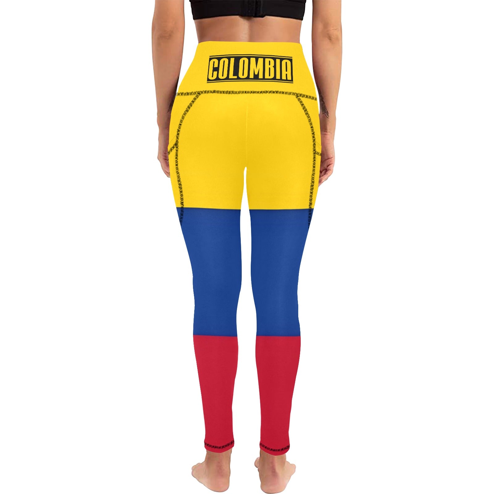 Colombia Flag Inspired Women's High Waist Leggings with Pockets