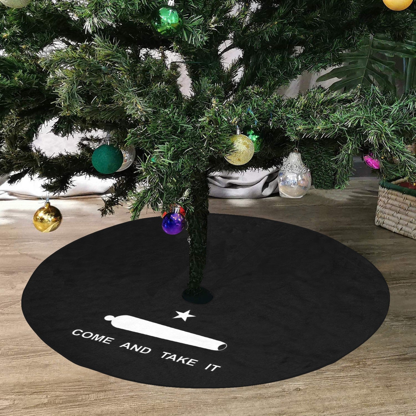 Stand out and celebrate your style with this Come and Take It Flag Inspired Thick Christmas Tree Skirt. Add it to your collection today.