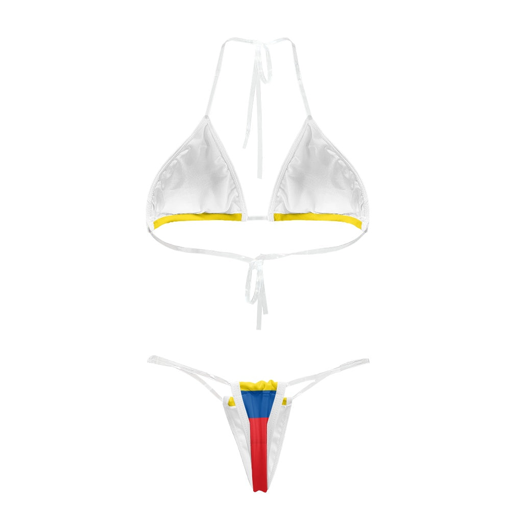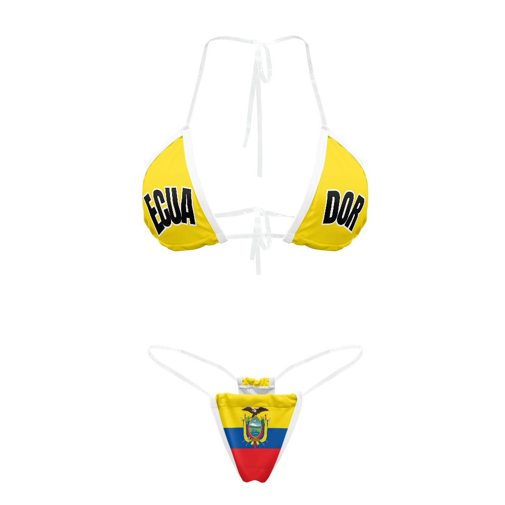 Stand out and celebrate your style with this Ecuador Flag Inspired Transparent String Thong Bikini. Add it to your collection today.