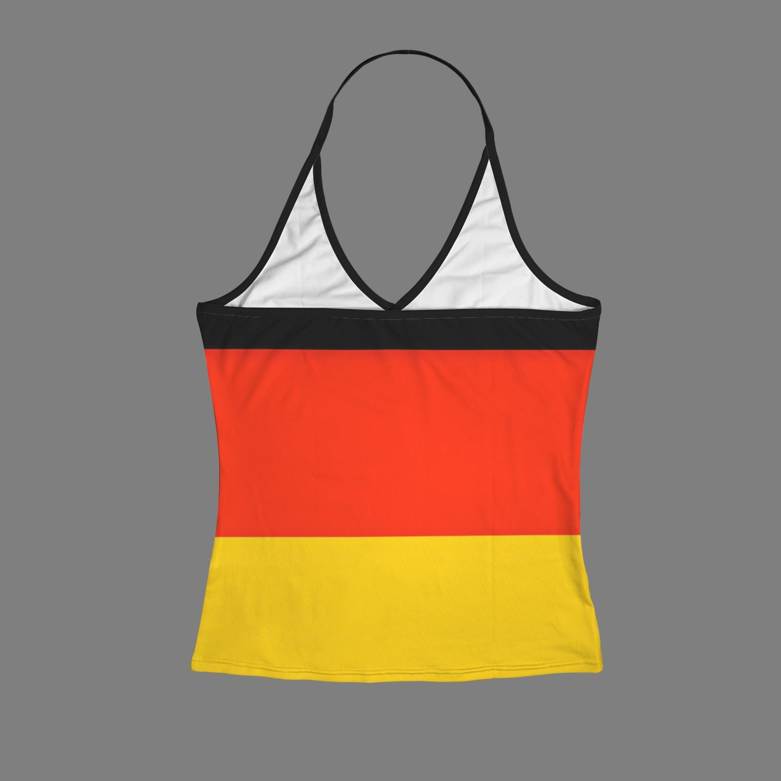 Stand out and celebrate your style with this Germany Flag Inspired V-neck Halter Open Back Tank Top. Add it to your collection today.
