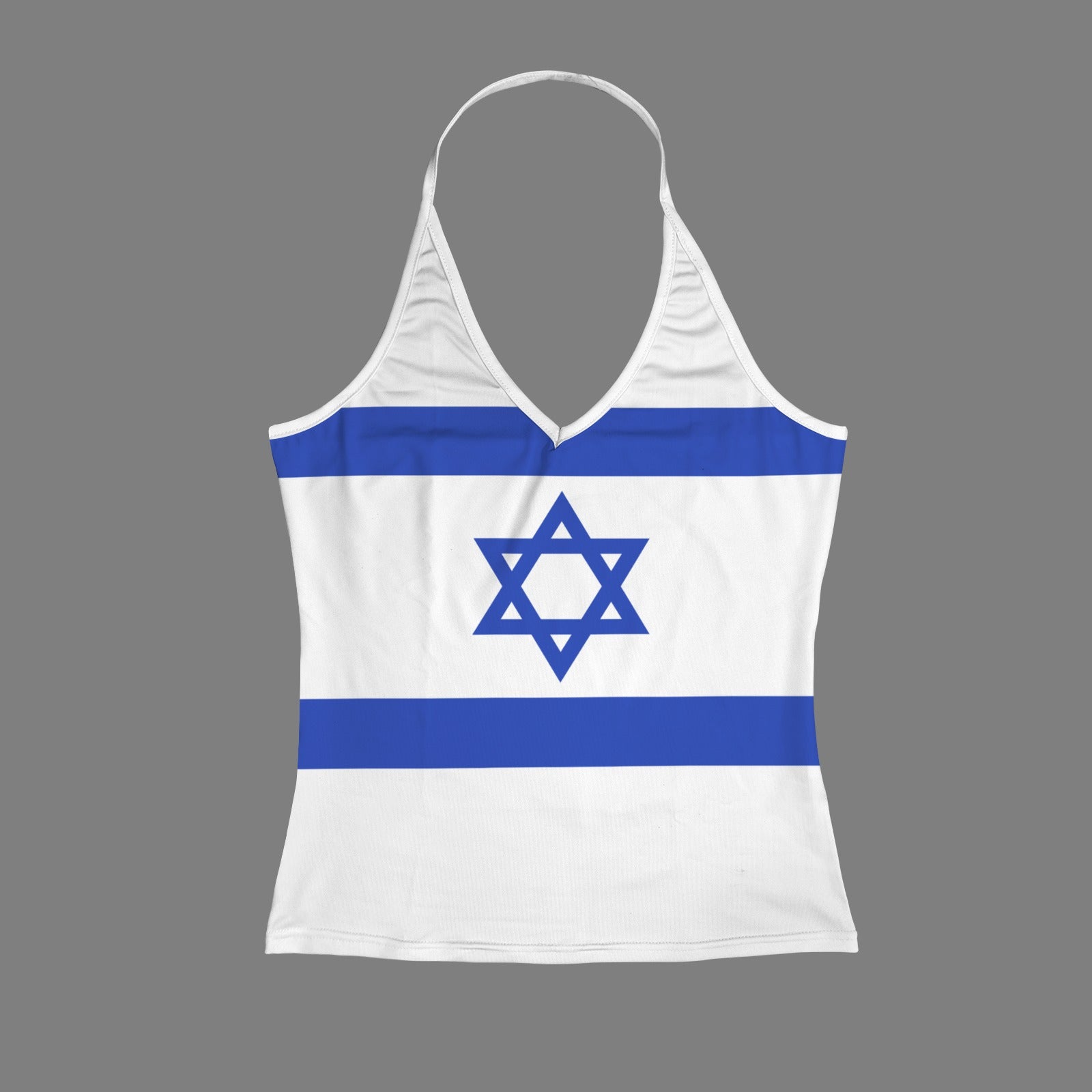 Stand out and celebrate your style with this Israel Flag Inspired V-neck Halter Open Back Tank Top. Add it to your collection today.