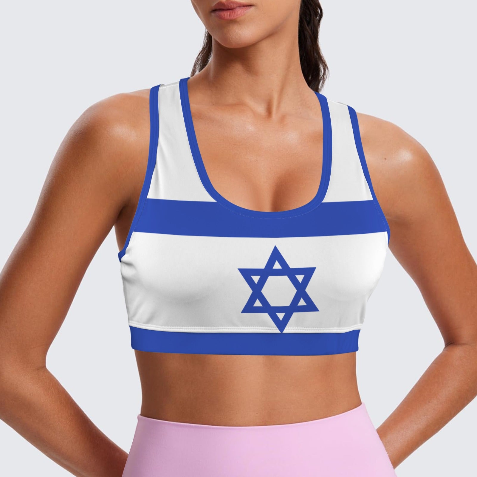 Stand out and celebrate your style with this Israel Flag Inspired Racerback Sports Bra. Add it to your collection today.
