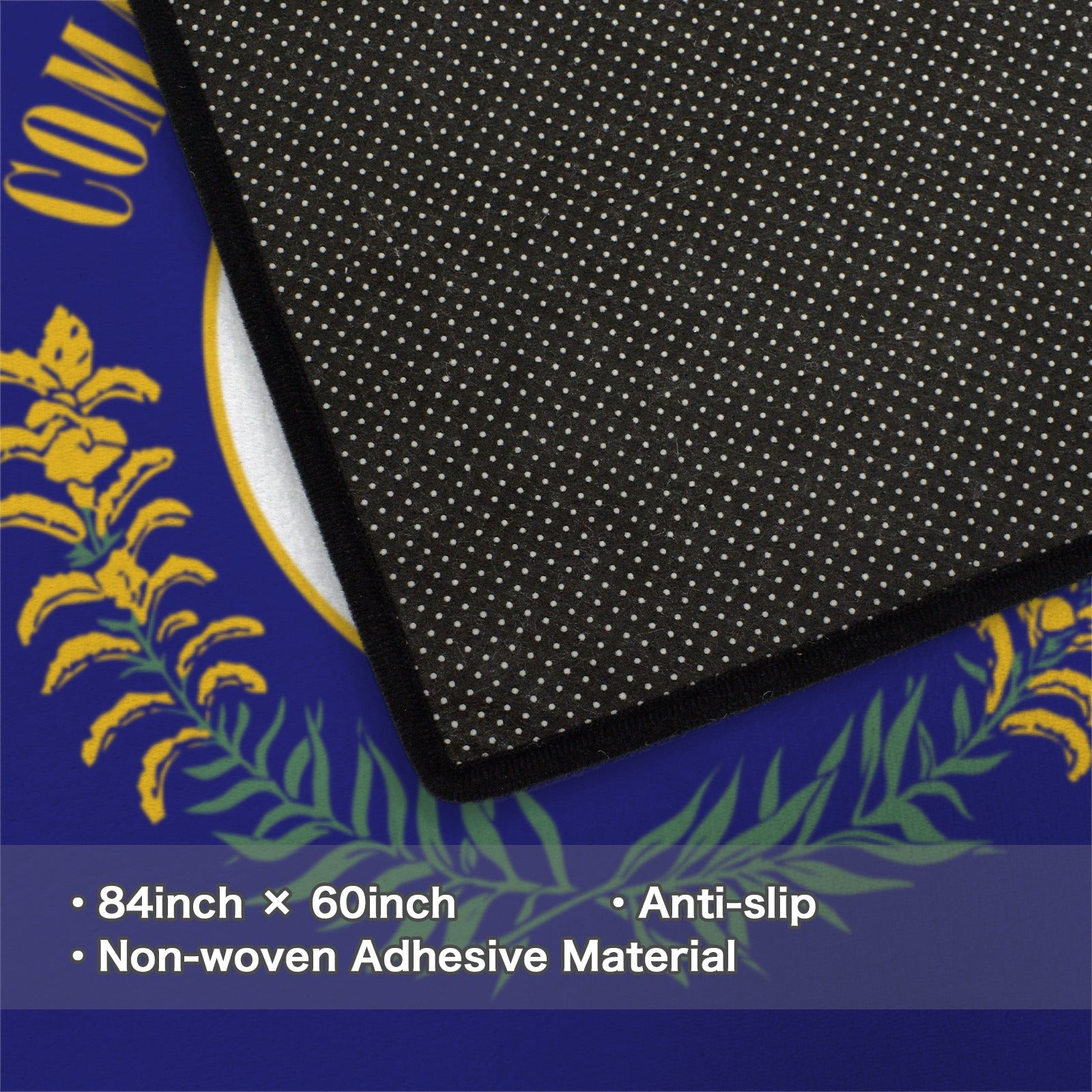 Show your style and pride with our Kentucky Flag Inspired Area Rug with Black Binding (Made in the USA). Designed with quality materials and crafted for impact, this piece is perfect for everyday use or special occasions. This 84×60 in. area rug features flannel with thickened non-woven fabric, a luxurious plush surface, a non-slip bottom with small dots for enhanced grip, and a black fixed bias binding for a clean, polished finish.