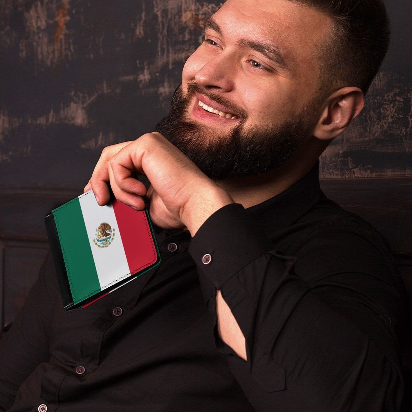 Stand out and celebrate your style with this Mexico Flag Inspired Men’s Two Sided Wallet. Add it to your collection today.