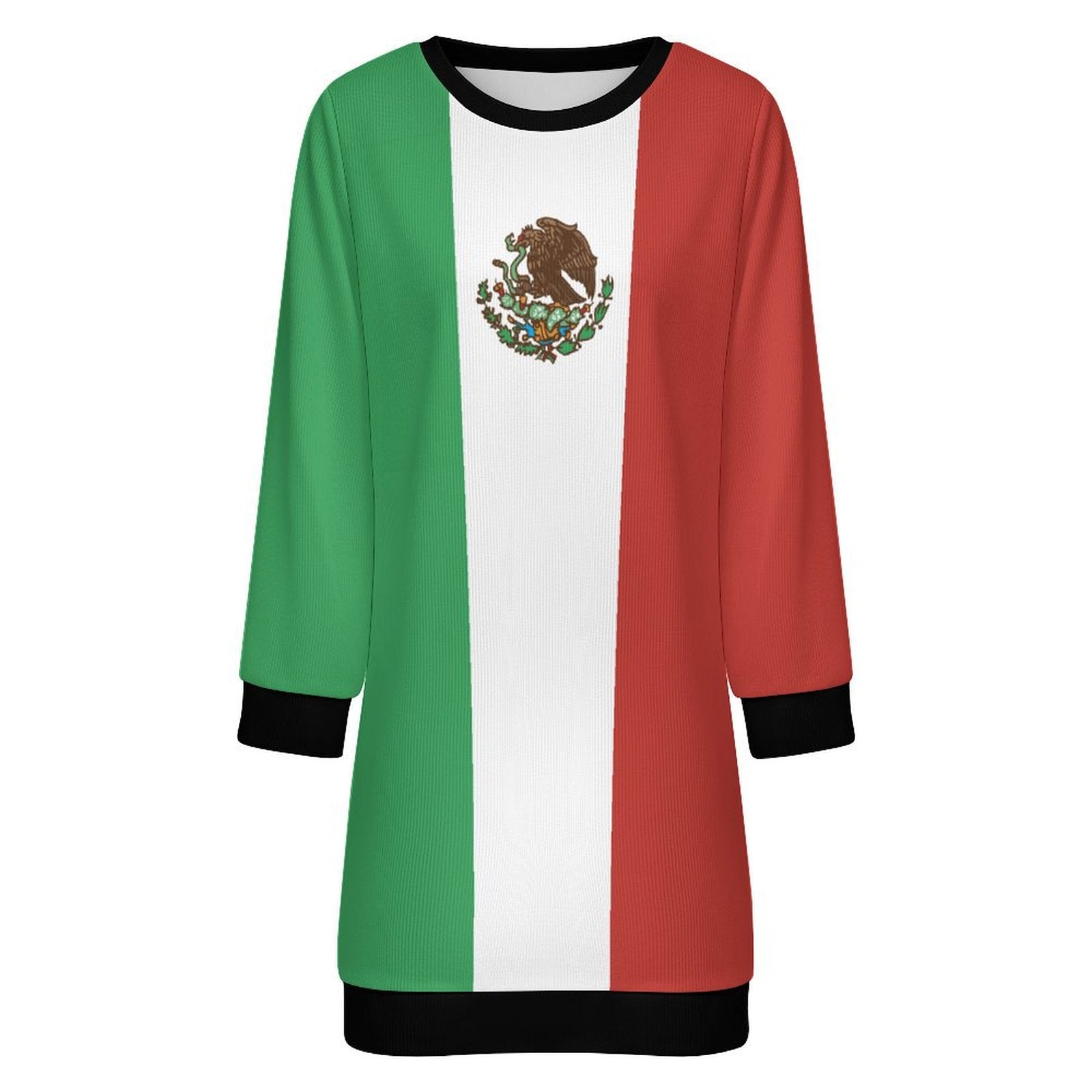 Stand out and celebrate your style with this Mexico Flag Inspired Sweater Dress. Add it to your collection today.