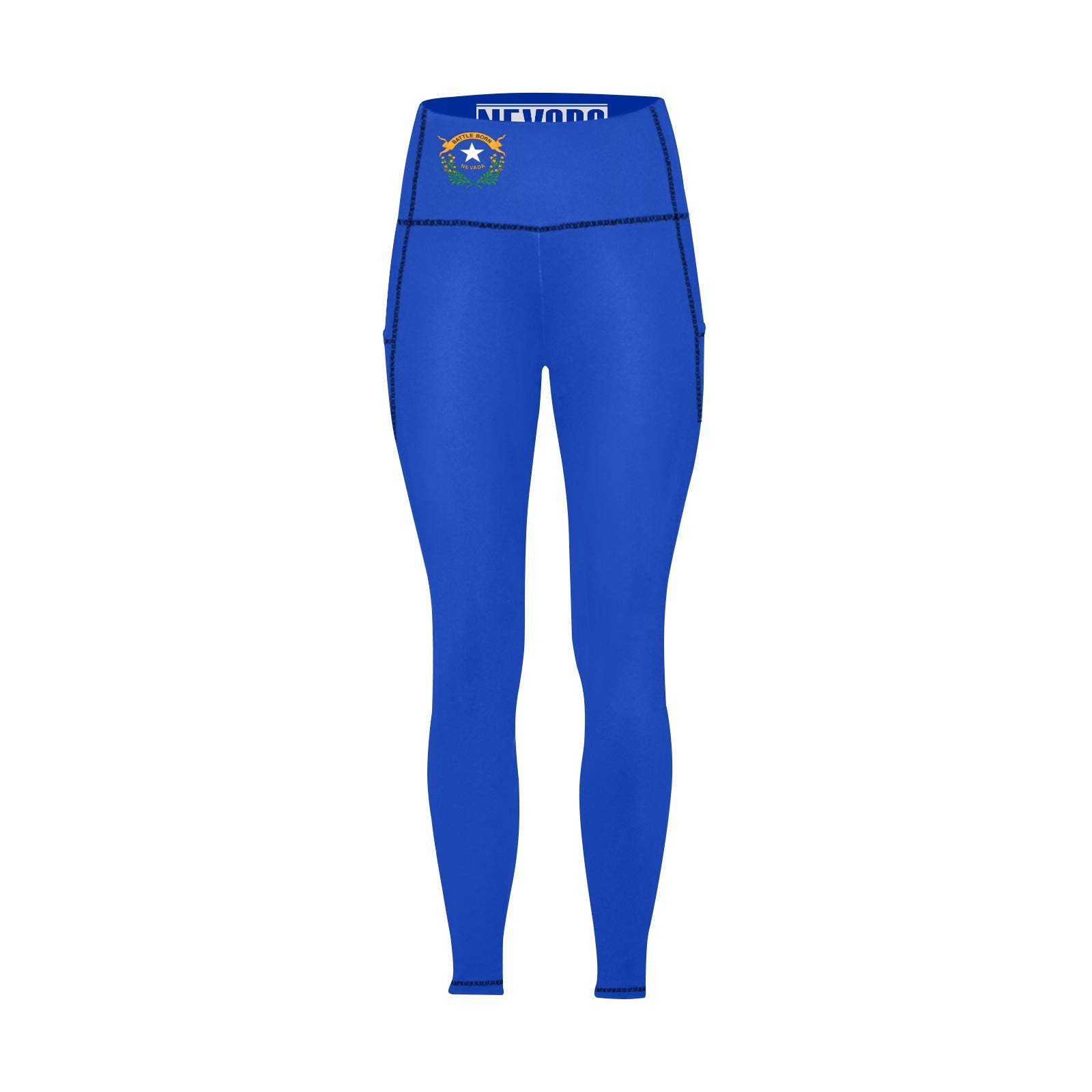 Nevada Flag Inspired Women’s High Waist Leggings with Pockets