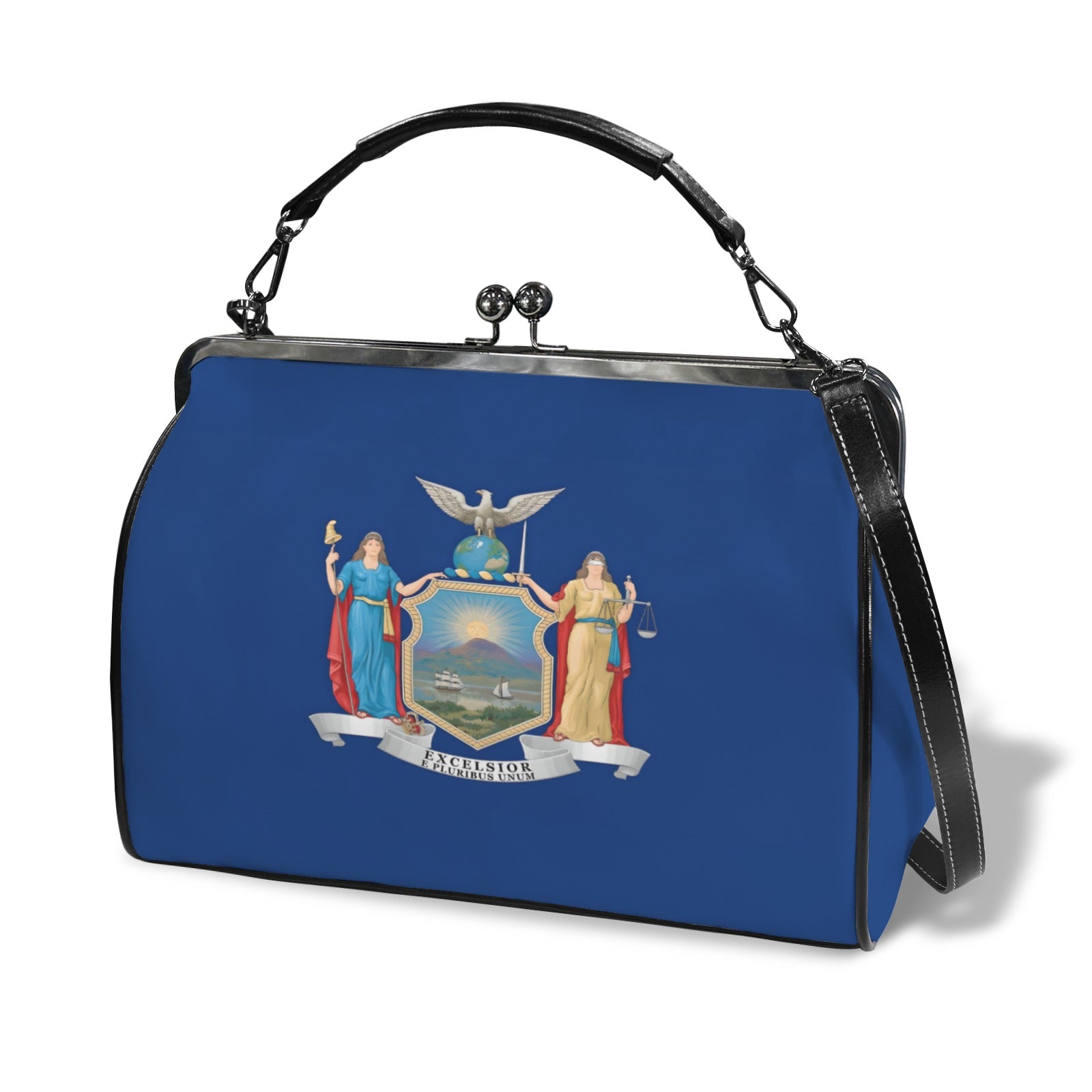New York Flag Inspired Kisslock Crossbody Shoulder Bag-Large