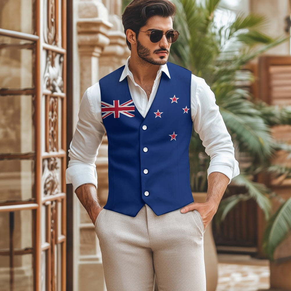 Stand out and celebrate your style with this New Zealand Flag Inspired Suit Vest Jacket. Add it to your collection today.