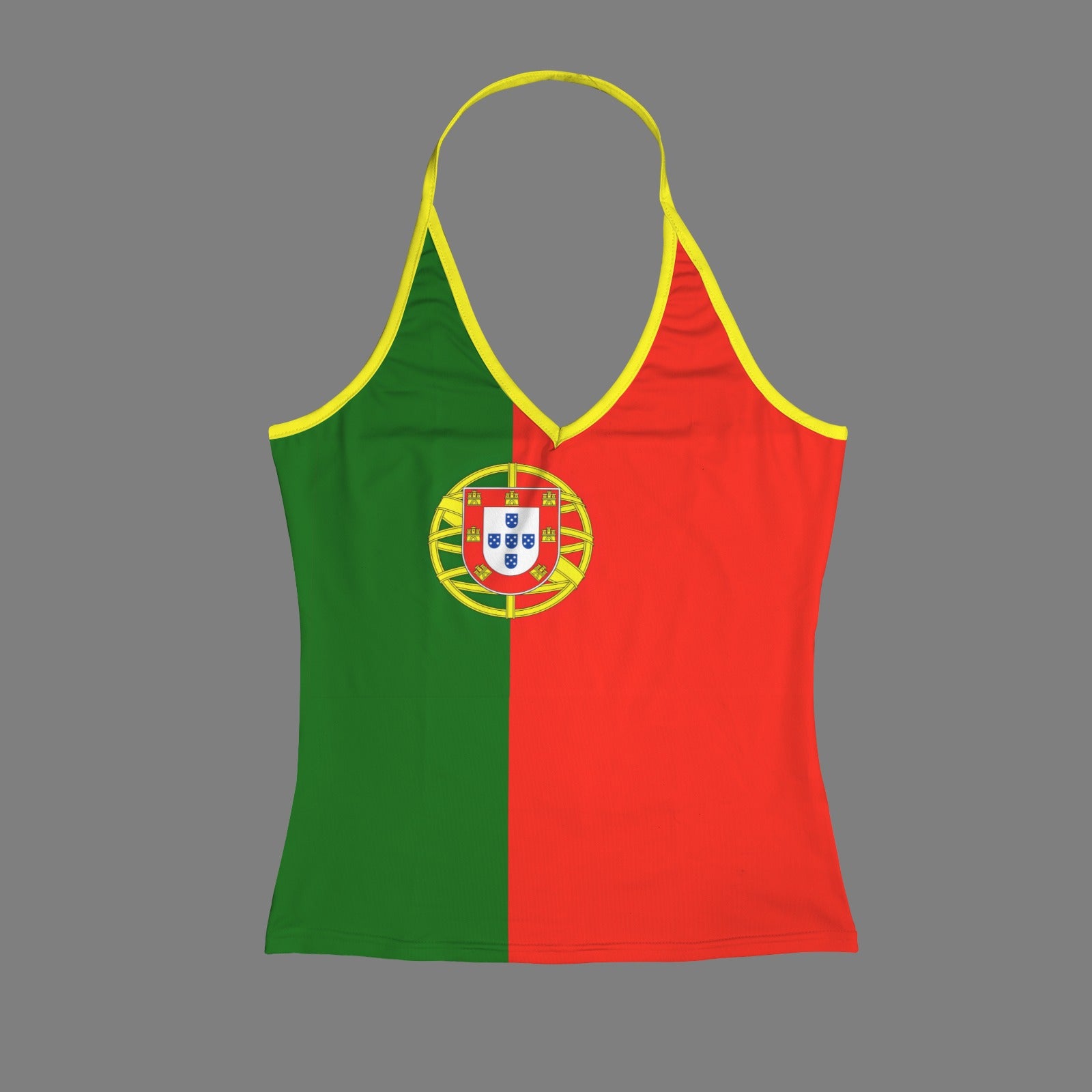 Stand out and celebrate your style with this Portugal Flag Inspired V-neck Halter Open Back Tank Top. Add it to your collection today.