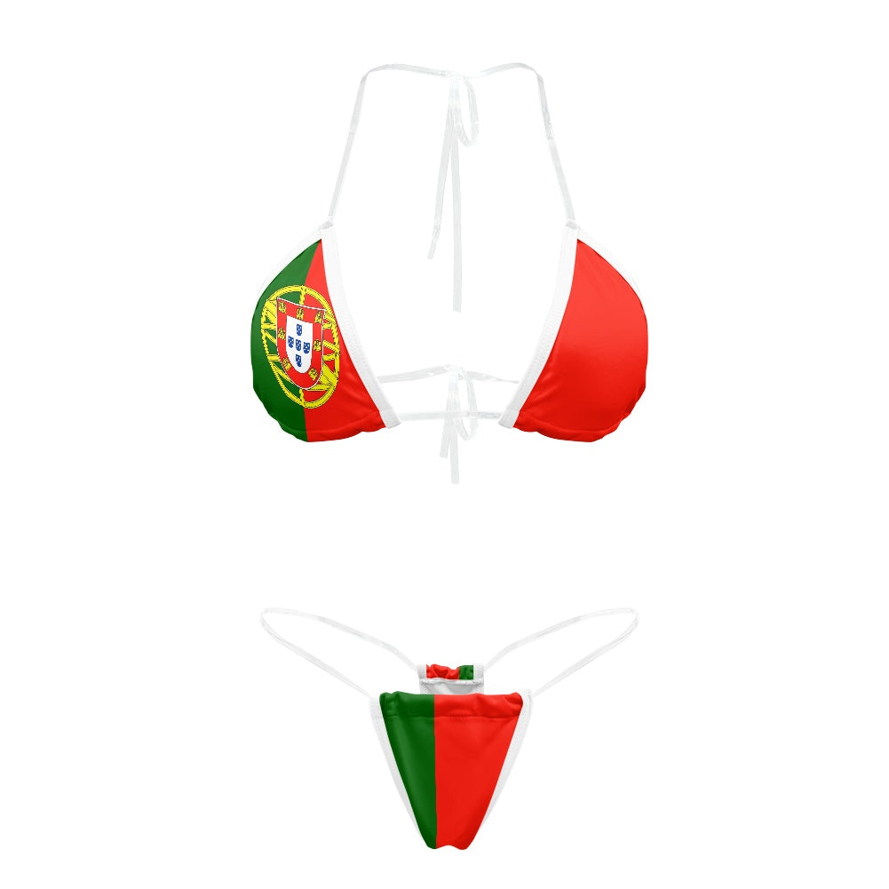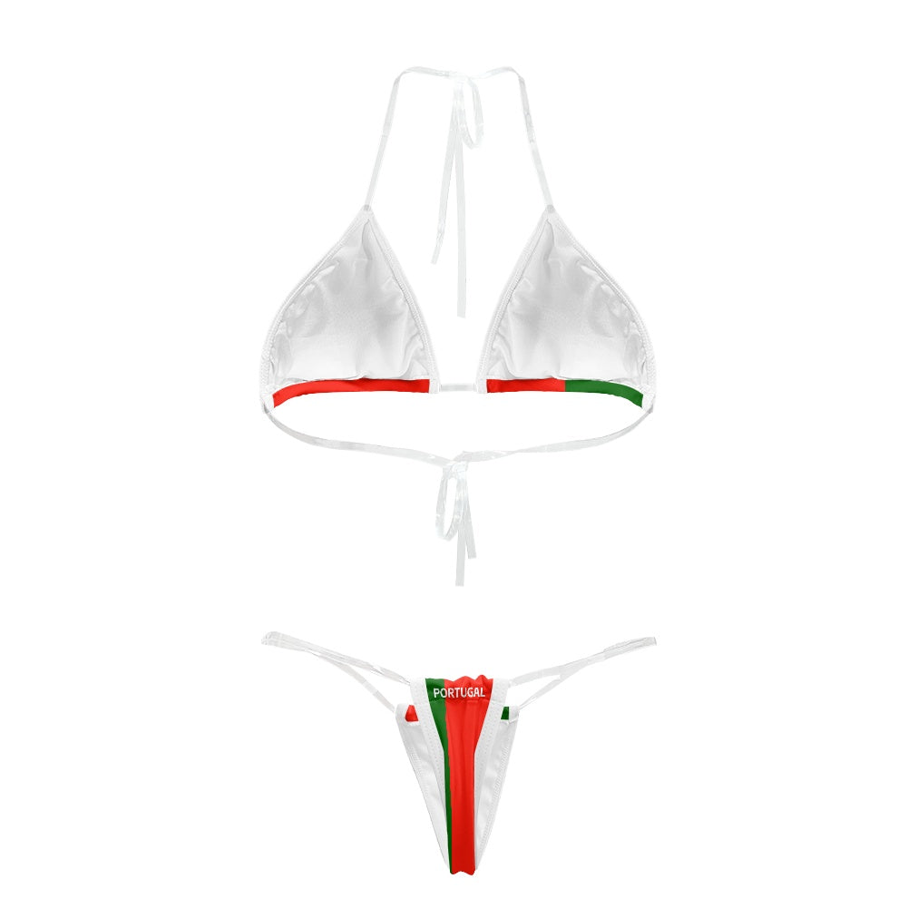 Stand out and celebrate your style with this Portugal Flag Inspired Transparent String Thong Bikini. Add it to your collection today.