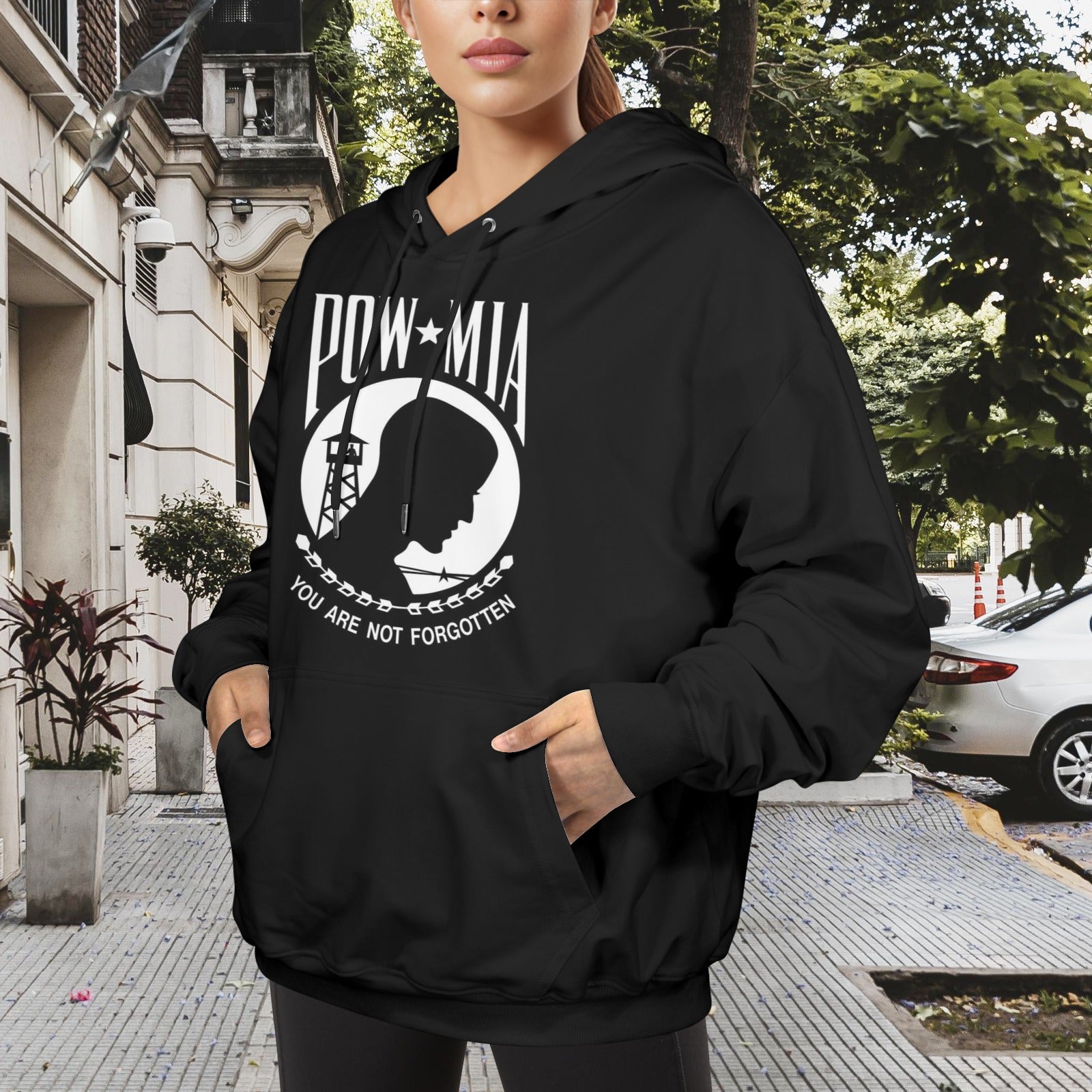 Stand out and celebrate your style with this POW/MIA Flag Inspired Women’s Hoodie Made in the USA. Add it to your collection today.