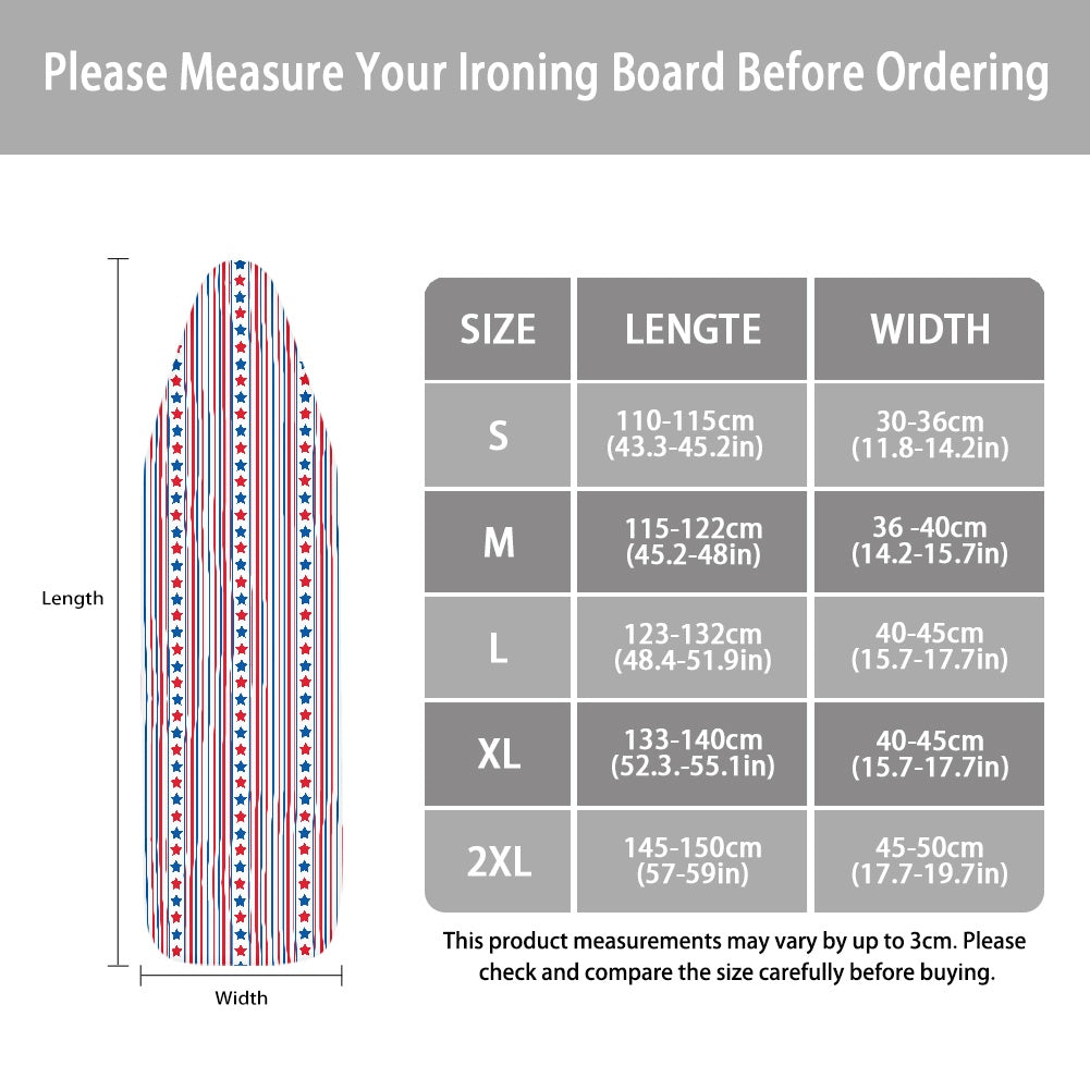 Show your style and pride with our Red, White, Blue Color Stars and Stripes Pattern Ironing Board Cover. Designed with quality materials and striking flag prints, this cover brings personality to your laundry space while offering a practical fit for everyday ironing. The durable polyester fabric and easy-install design ensure convenience and a secure hold. Available in multiple sizes, it is perfect for refreshing your ironing board with a unique flag-inspired look.