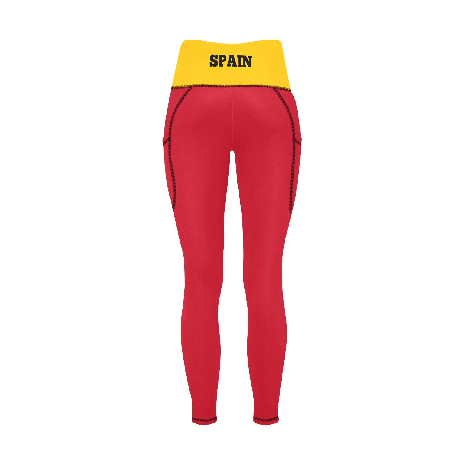 Spain Flag Inspired Women's High Waist Leggings with Pockets