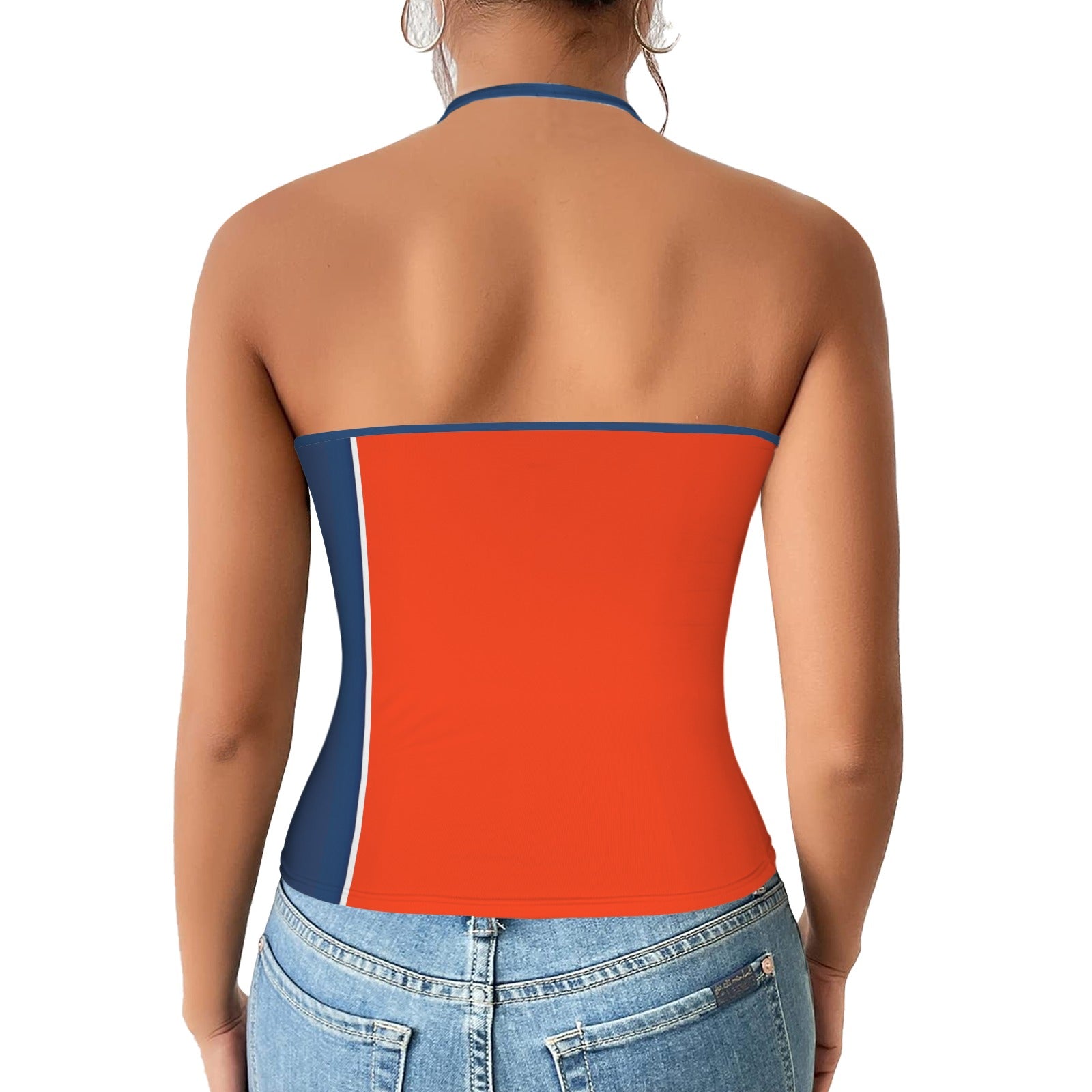 Show your style and pride with our Tennessee Flag Inspired V-neck Halter Open Back Tank Top. Made from smooth, elastic polyester and designed with a flattering halter neckline and a deep V-cut front, this backless tank top is perfect for workouts, casual wear, or a night out. Lightweight and comfortable, it pairs effortlessly with jeans, leggings, shorts, or skirts for a confident, standout look.