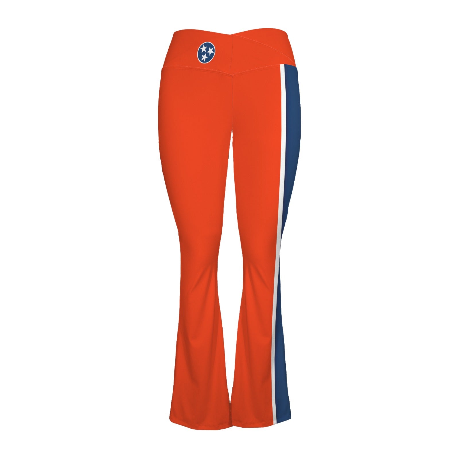 Tennessee Flag Inspired Women's V-Crossover High Waisted Flare Leggings