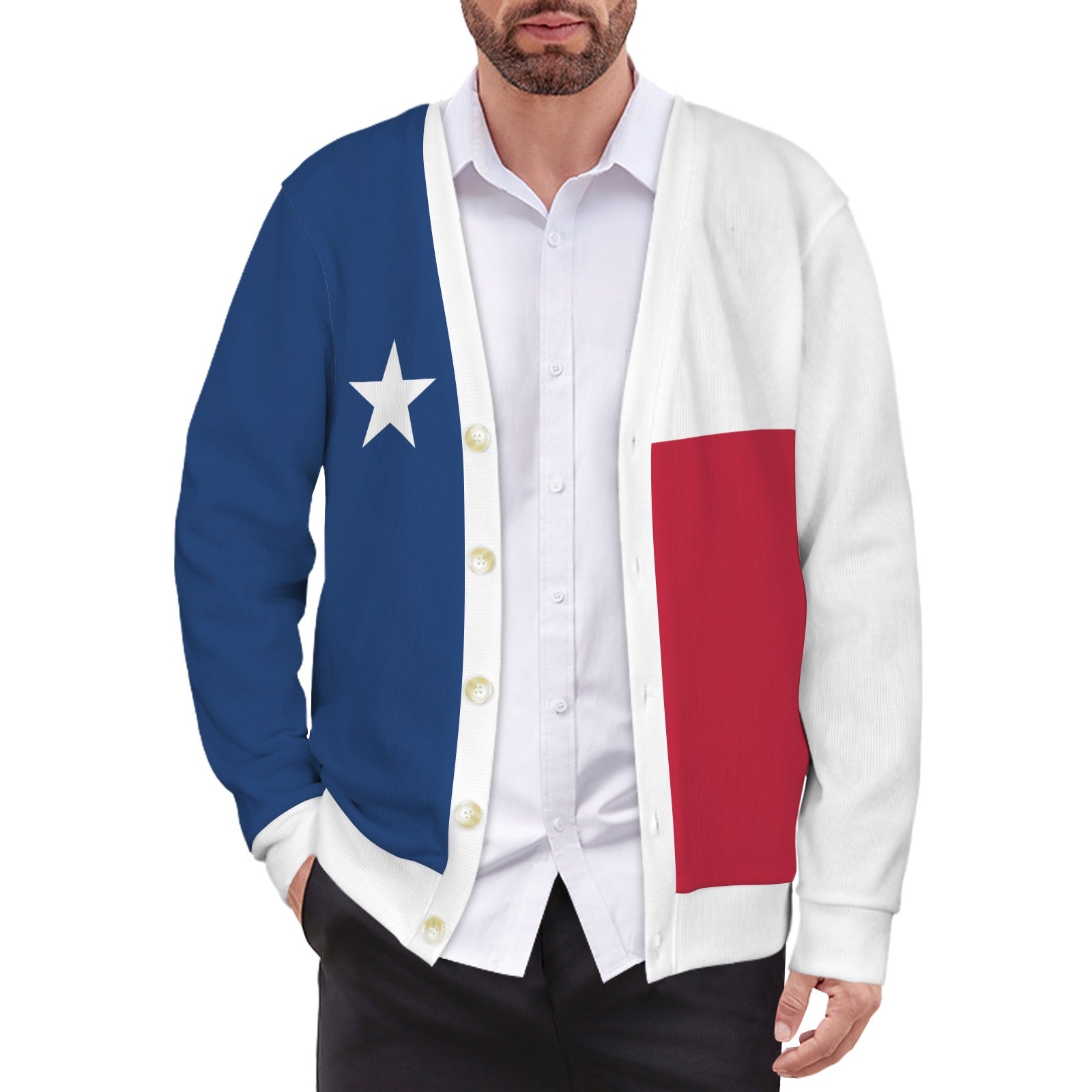 Stand out and celebrate your style with this Texas Flag Inspired Men’s Cardigan. Add it to your collection today.