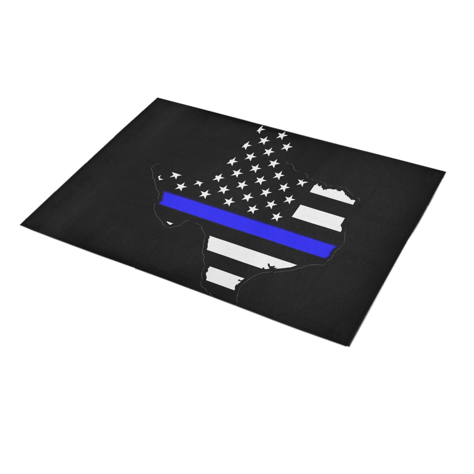Texas Shape Thin Blue Line Flag Inspired Doormat 30" x 18" (Sponge Material)