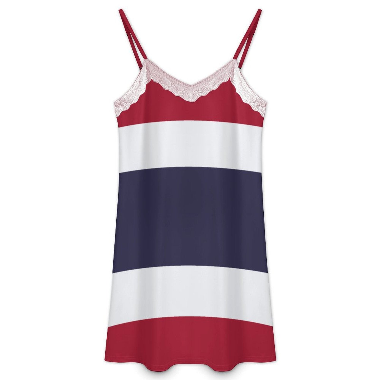 Thailand Flag Inspired Lace Trim Camisole Nightgown