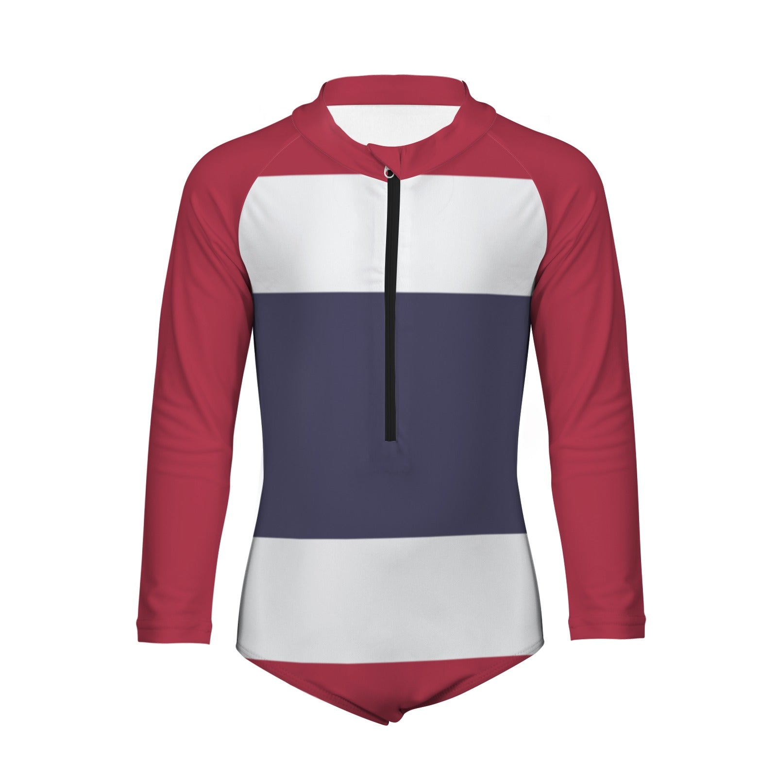 Thailand Flag Little Girls' Long Sleeve One-Piece Swimsuit
