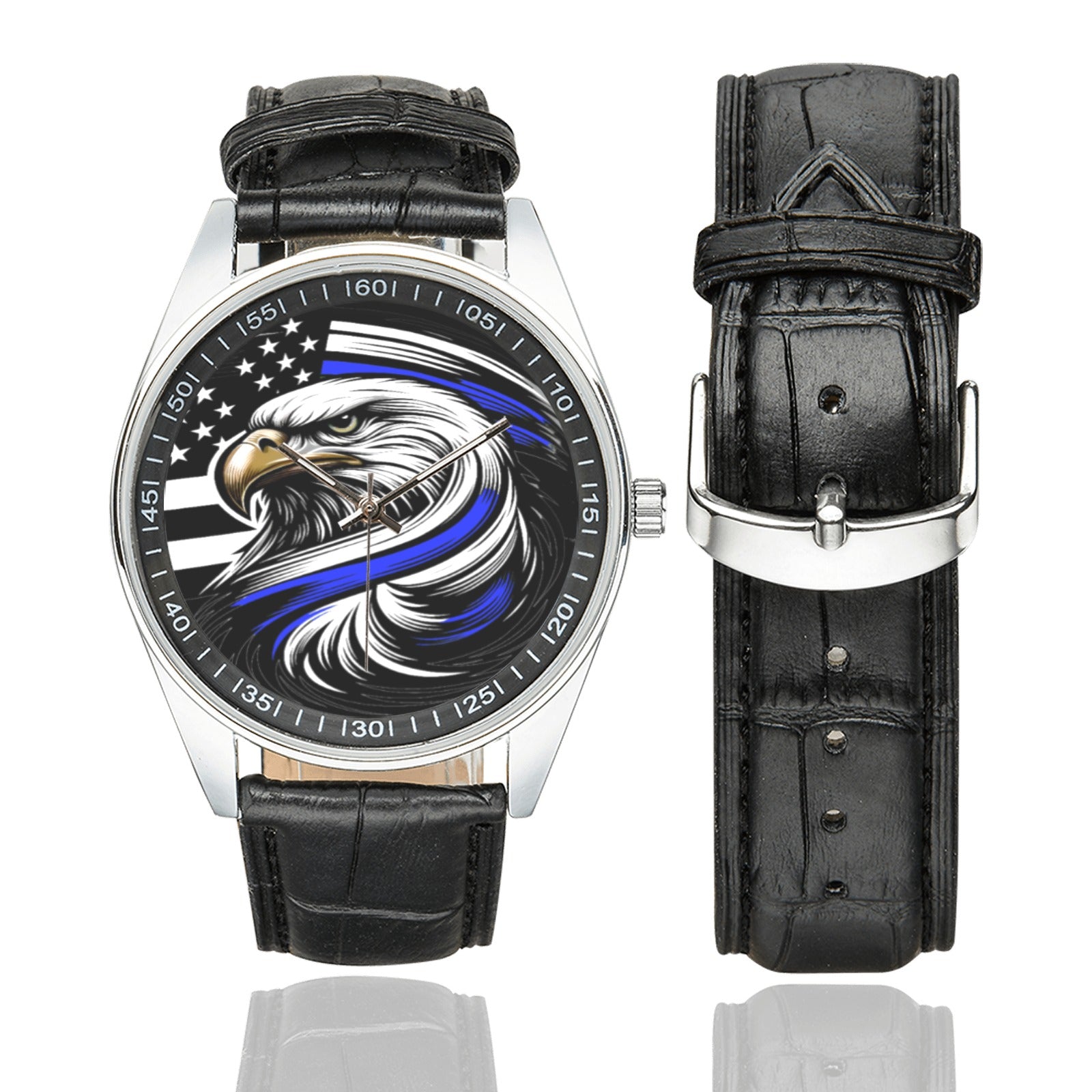 Thin Blue Line Flag Eagle Men's Casual Leather Strap Watch