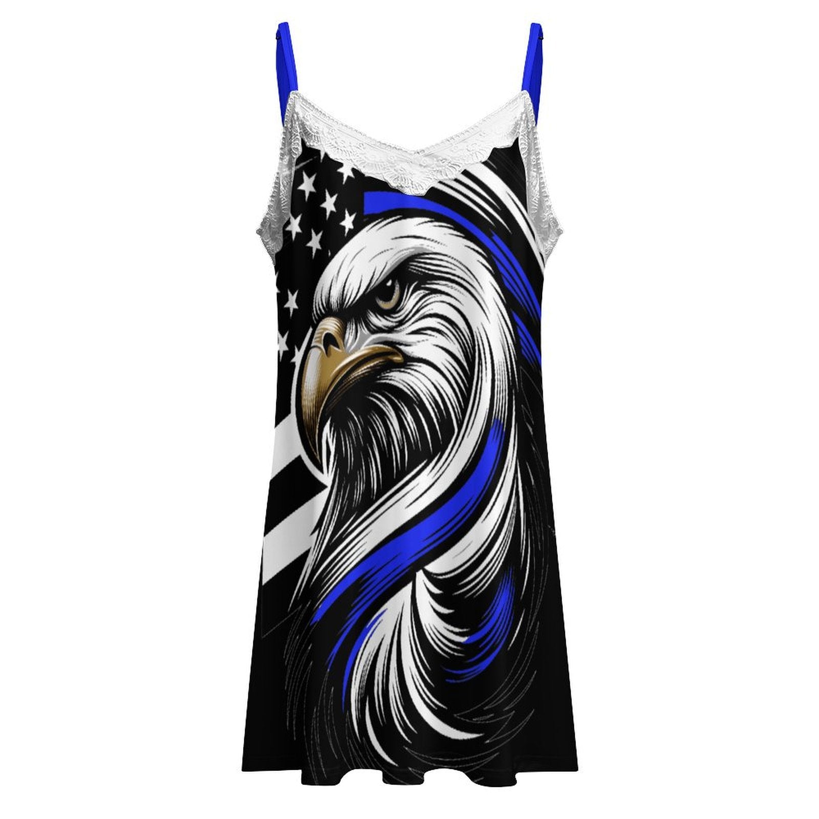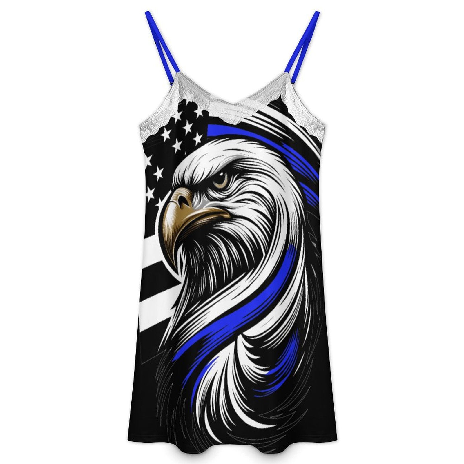 Thin Blue Line Flag Inspired Eagle Lace Trim Camisole Nightgown
