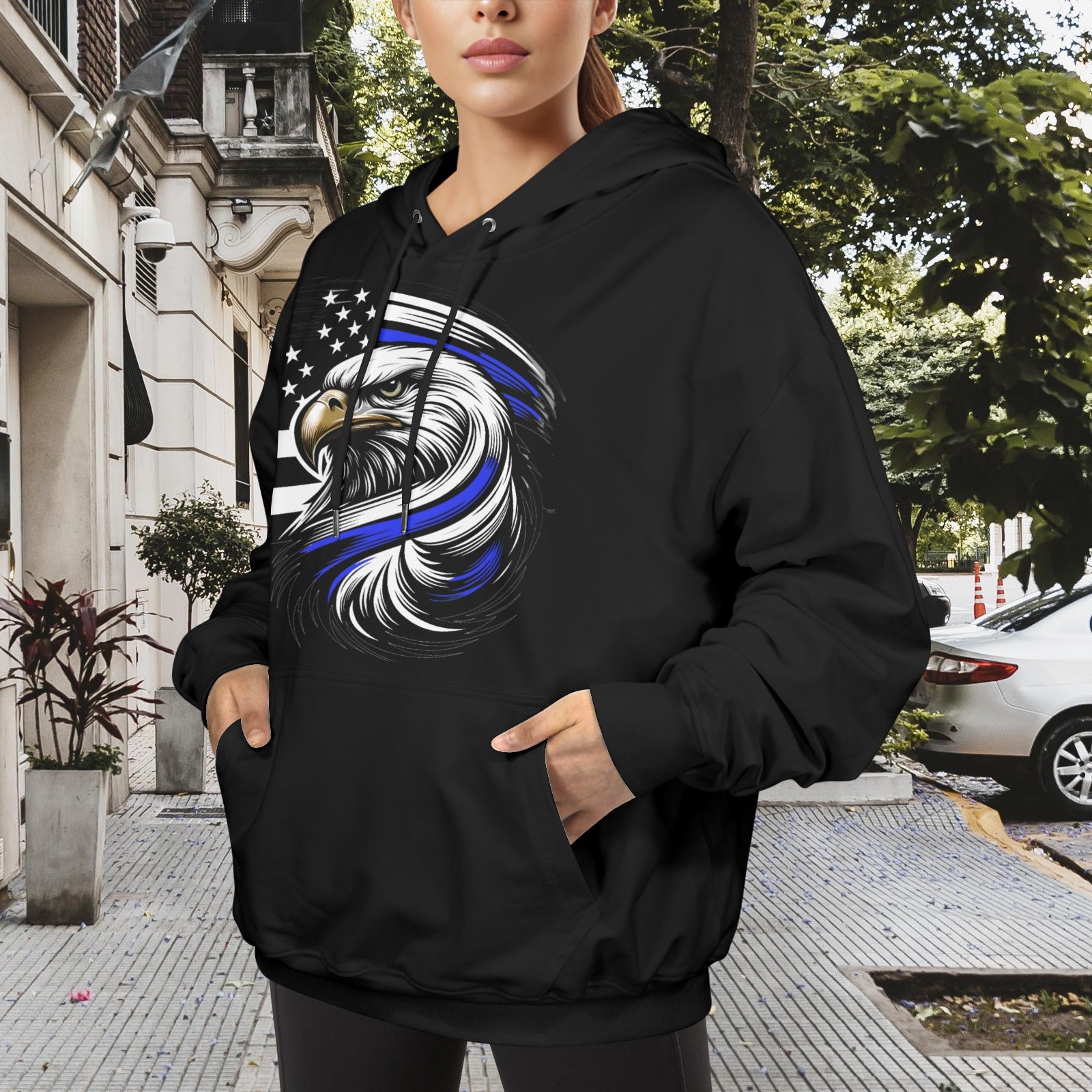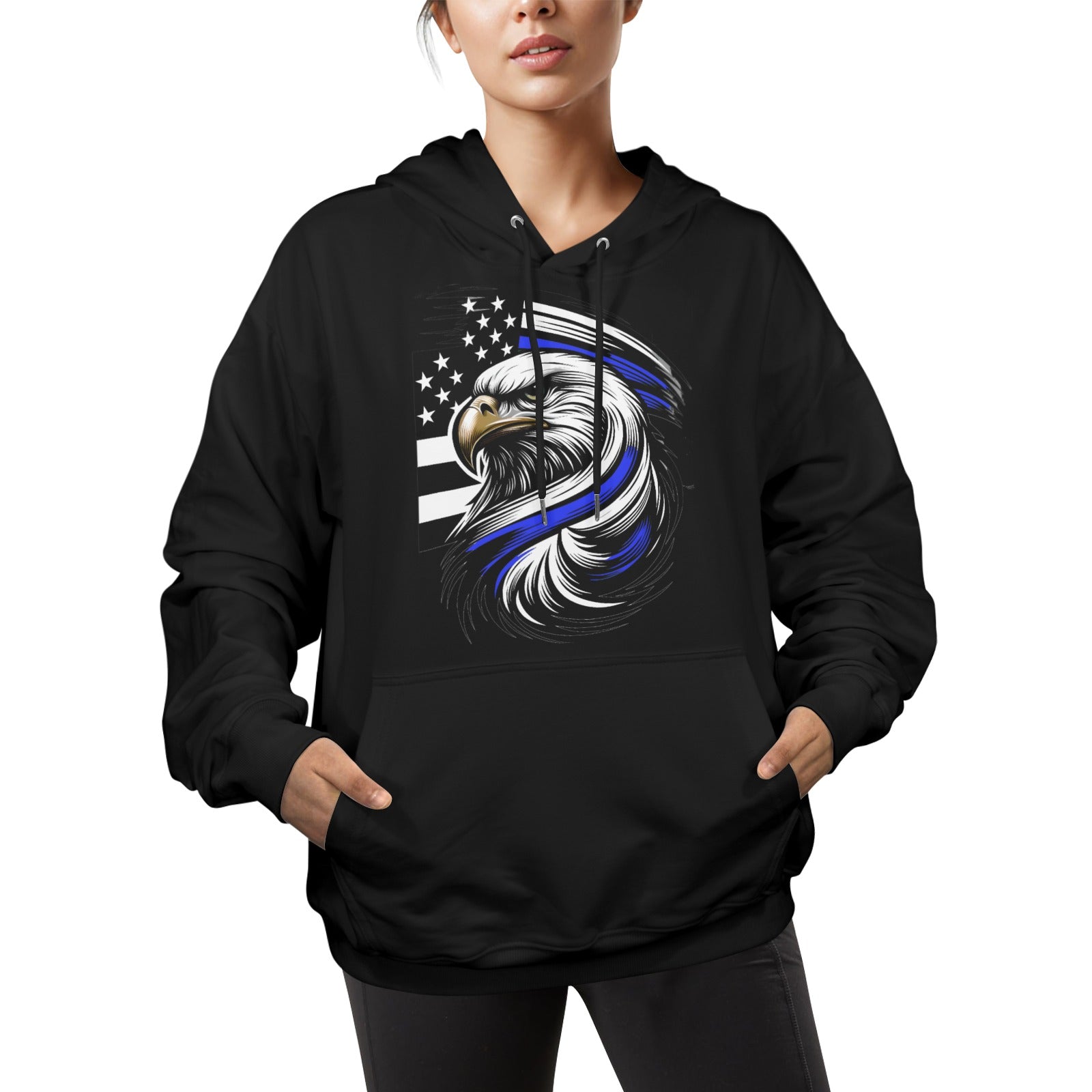 Thin Blue Line Flag Inspired Eagle Women's Hoodie Made in the USA