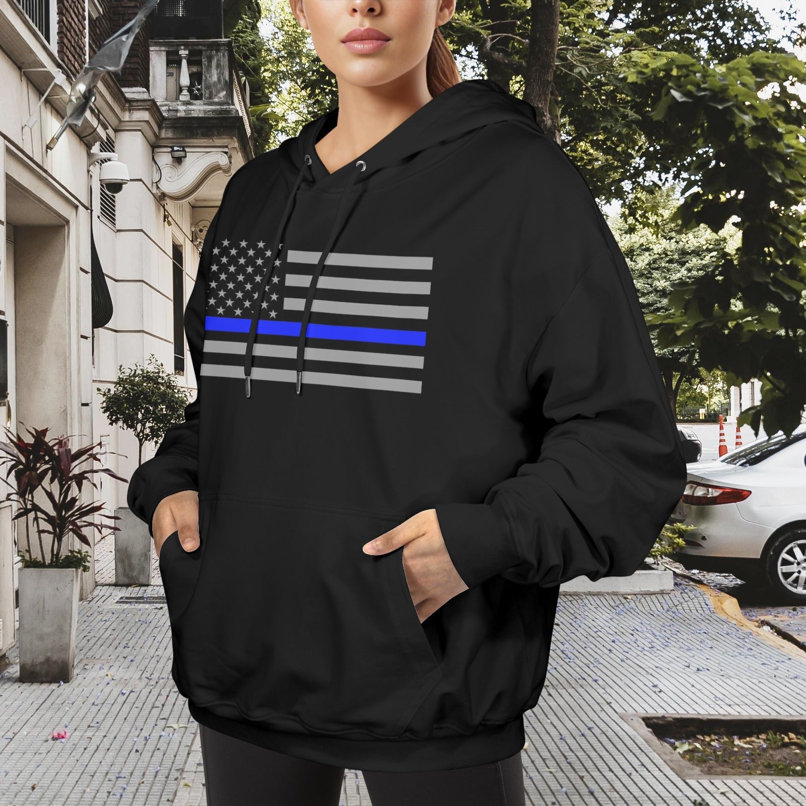 Thin Blue Line Flag (Subdued) Women's Hoodie Made in the USA