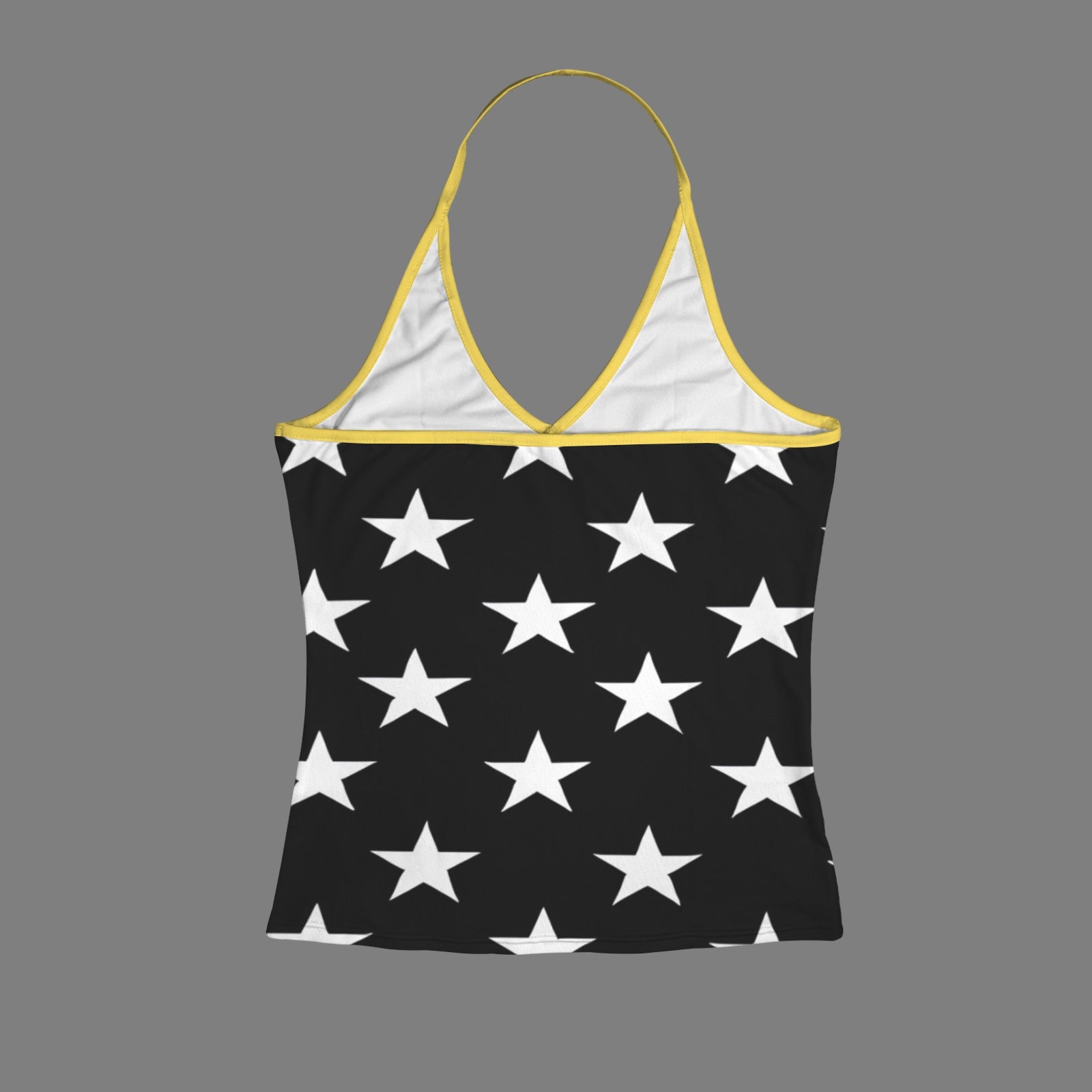 Thin Gold Line Flag Inspired V-neck Halter Open Back Tank Top