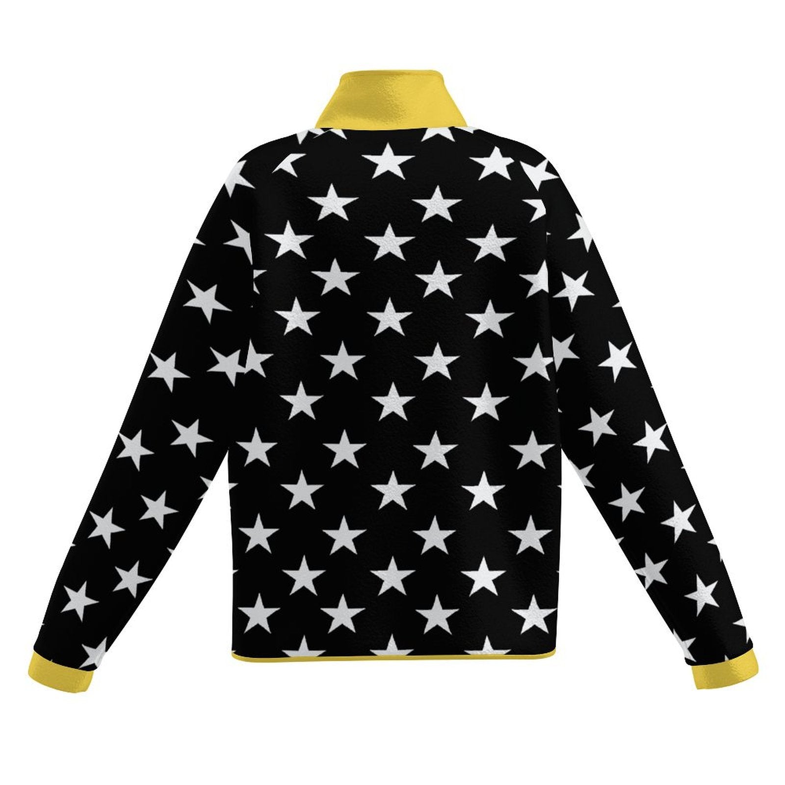 Thin Gold Line Flag Inspired Women's Stand Collar Fleece Jacket