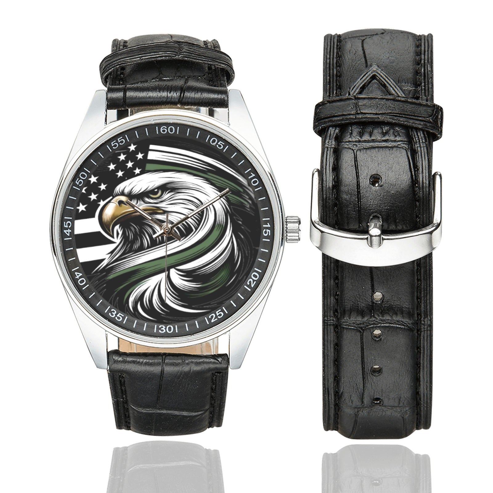 Show your style and pride with our Thin Green Line Flag Eagle Men’s Casual Leather Strap Watch. Designed with quality materials and crafted for impact, this piece is perfect for everyday use or special occasions.