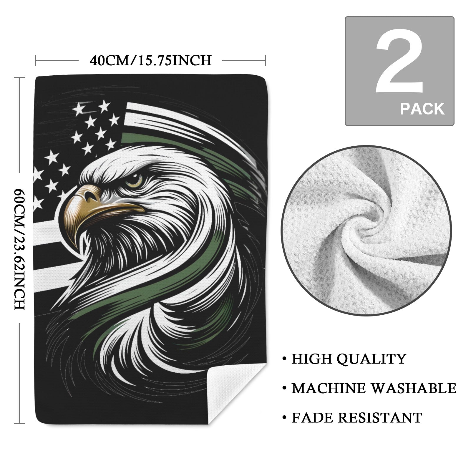 Thin Green Line Flag Inspired Eagle Kitchen Towel 40X60cm (Pack of 2) (Made in the USA)
