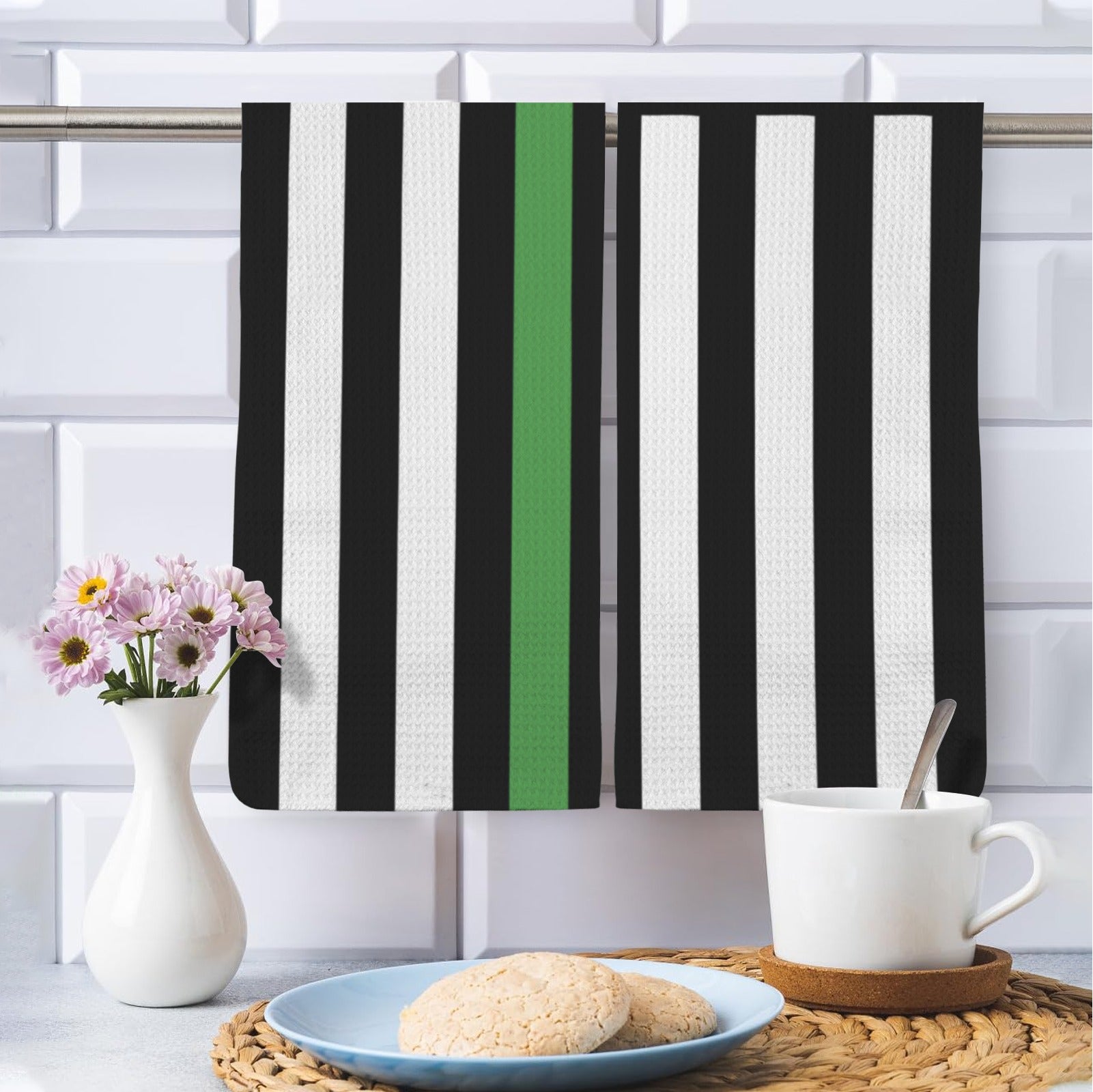 Thin Green Line Flag Inspired Kitchen Towel 40X60cm (Pack of 2) (Made in the USA)