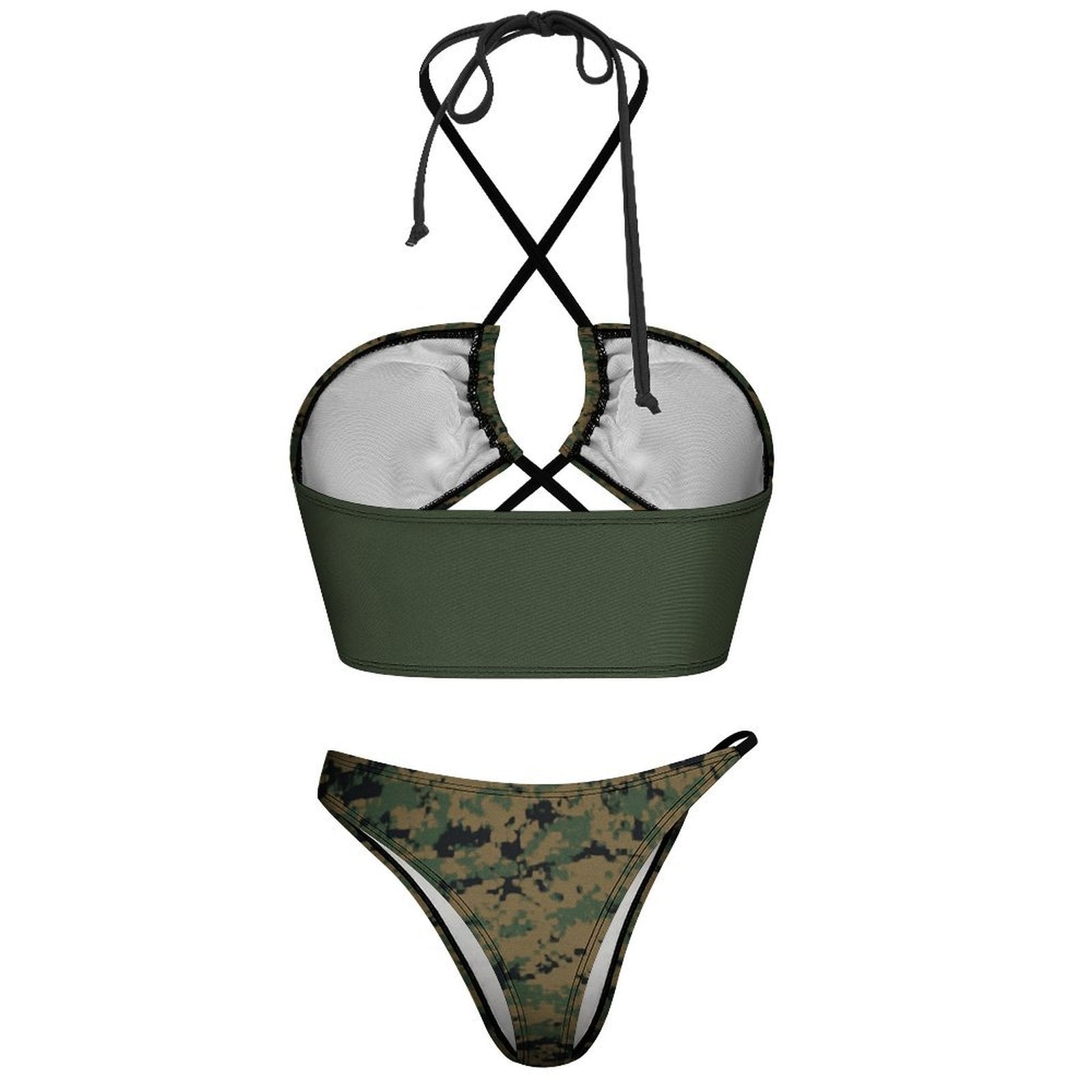 Thin Green Line Flag Inspired On Digital Camo Bikini Swimsuit (J197D59)