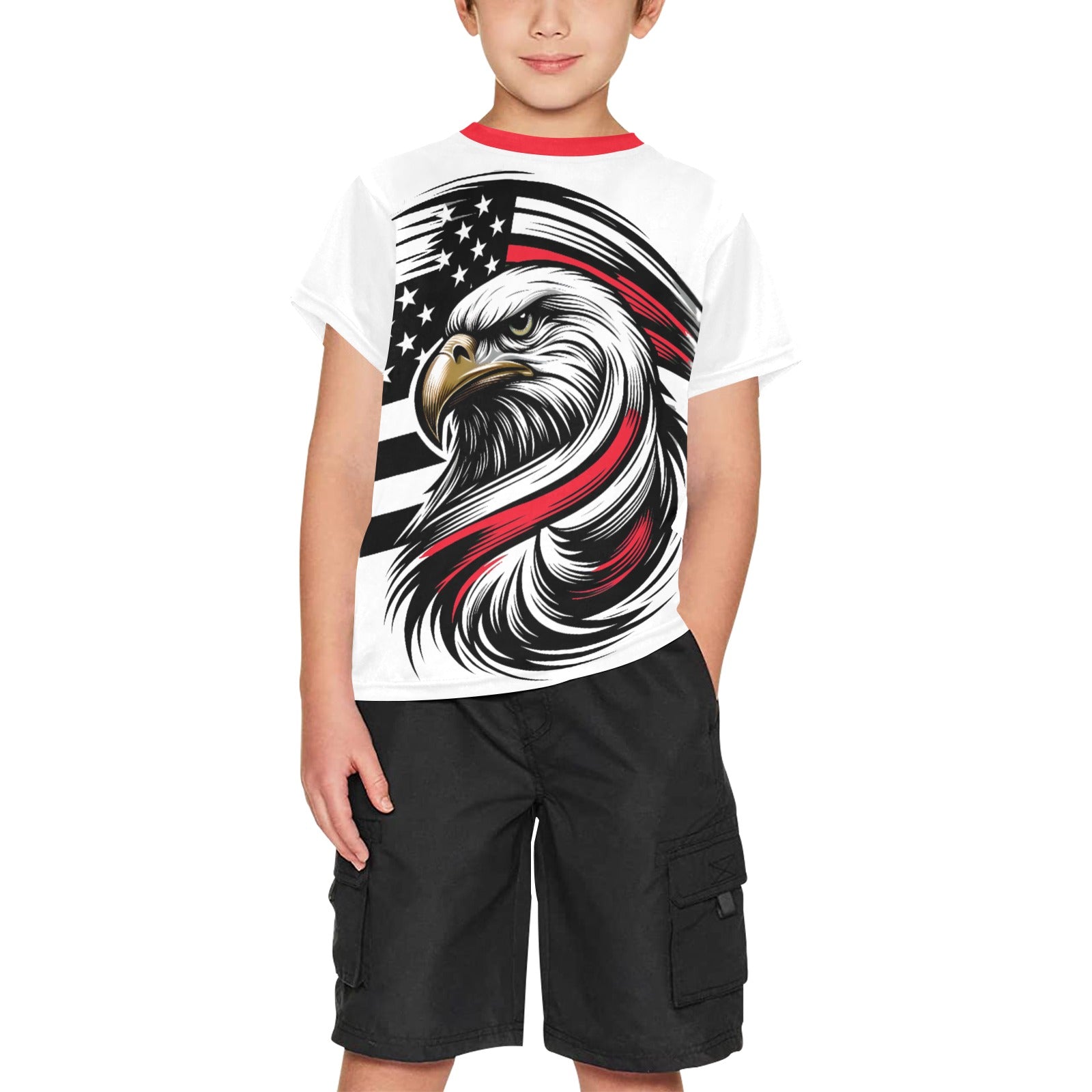 Thin Red Line Flag Eagle Boys Crew Neck T-Shirt Made in the USA