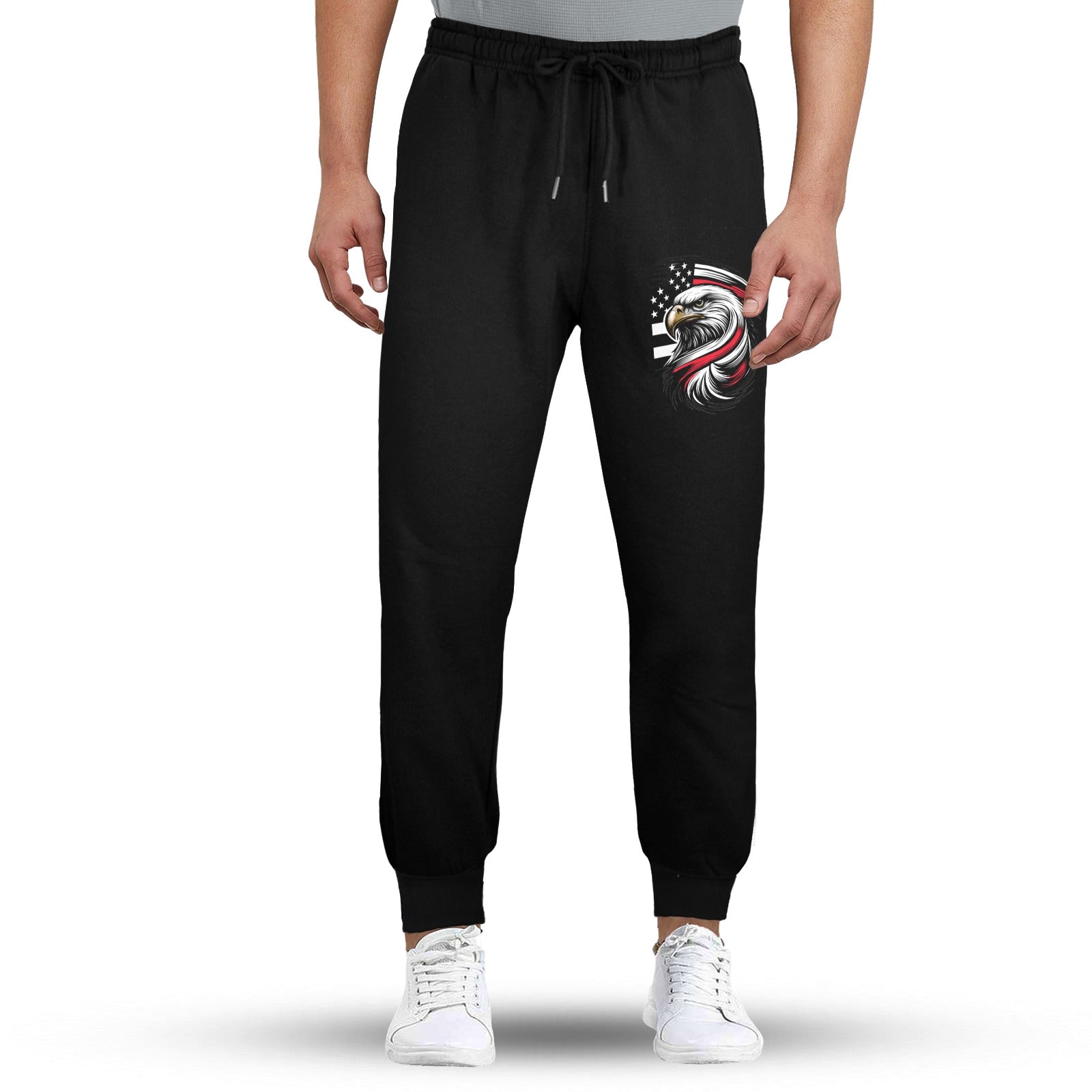Thin Red Line Flag Inspired Eagle Unisex Fleece Sweatpants (Left Printing) | Ships from USA