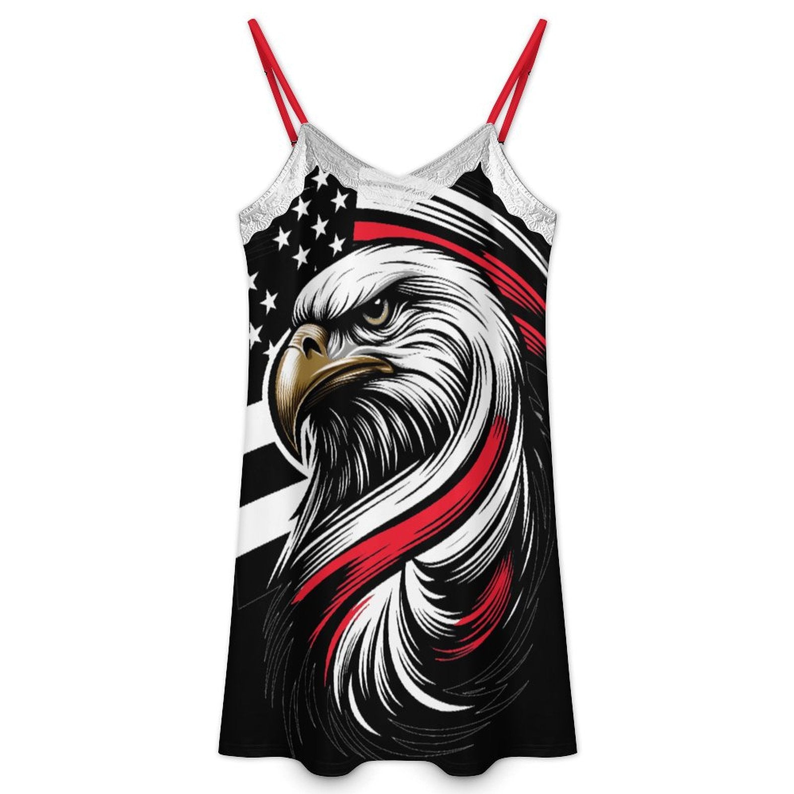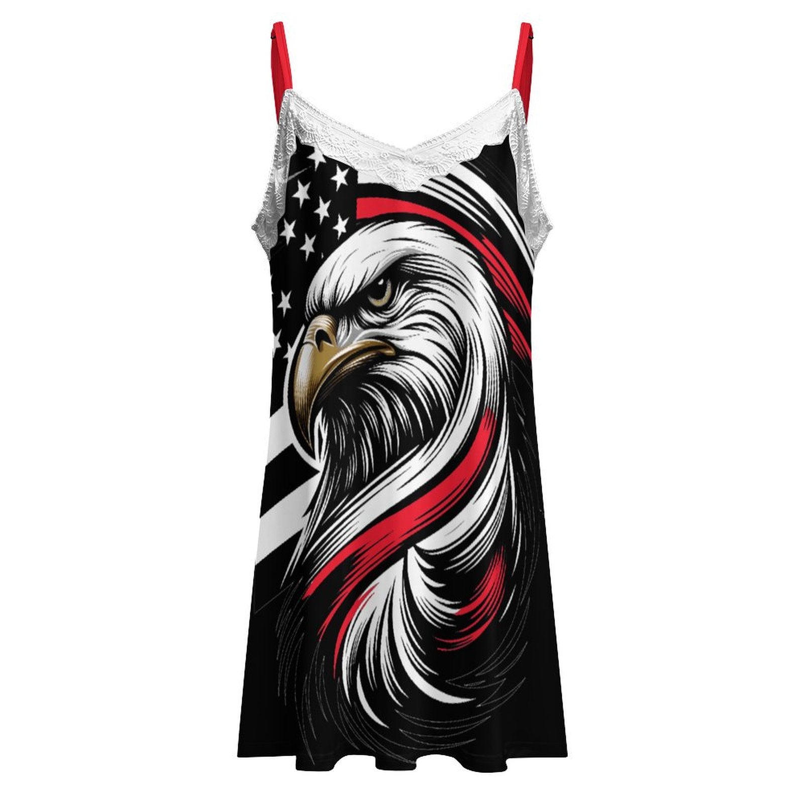 Thin Red Line Flag Inspired Eagle Lace Trim Camisole Nightgown