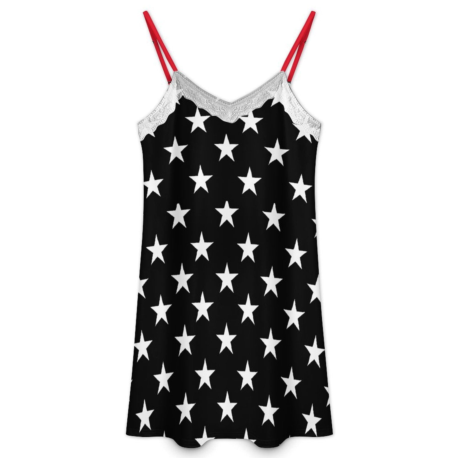 Thin Red Line Flag Inspired Lace Trim Camisole Nightgown
