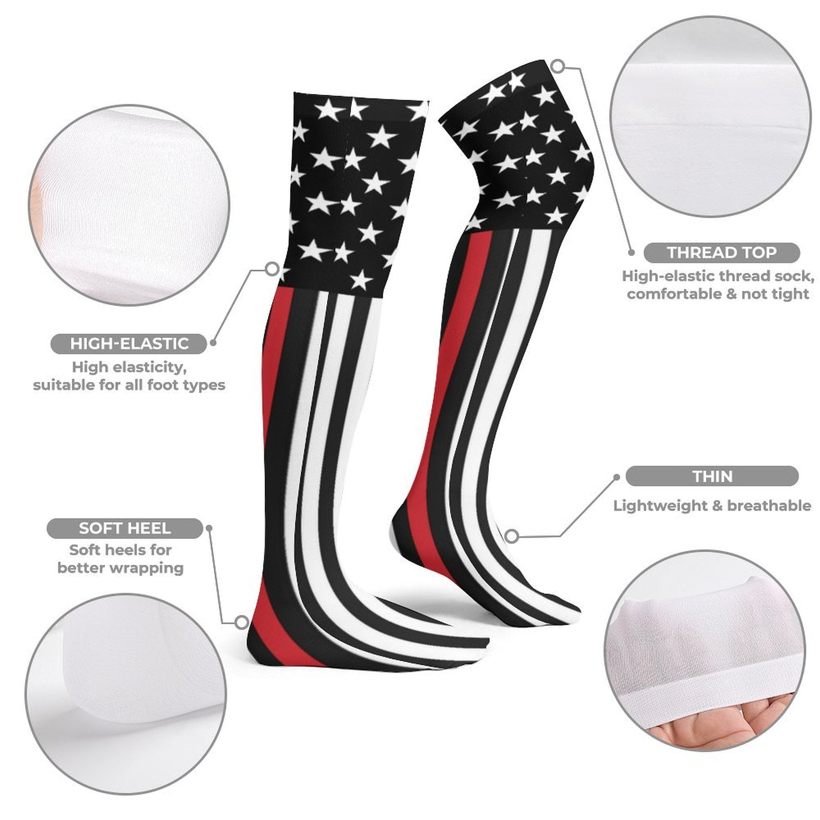 Show your style and pride with our Thin Red Line Flag Inspired Stockings (Long). Designed with quality materials and crafted for impact, these stockings are perfect for everyday wear, casual outings, themed events, or lounging in comfort. Their lightweight yet durable build ensures a snug and breathable fit all day long.
