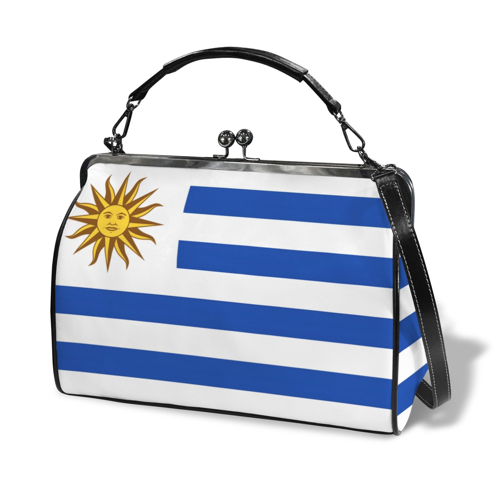 Stand out and celebrate your style with this Uruguay Flag Inspired Kisslock Crossbody Shoulder Bag-Large. Add it to your collection today.