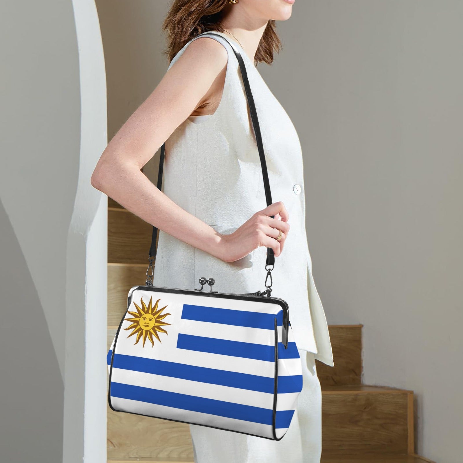 Uruguay Flag Inspired Kisslock Crossbody Shoulder Bag-Large